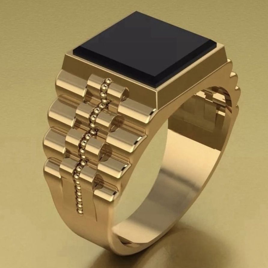 18K Gold Overlay Rolex Design Black Onyx Mens Ring Size 10