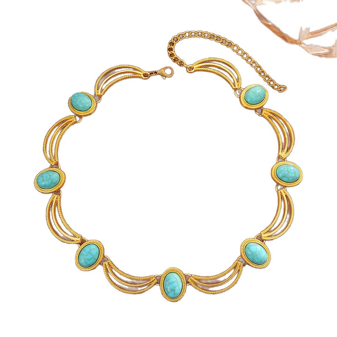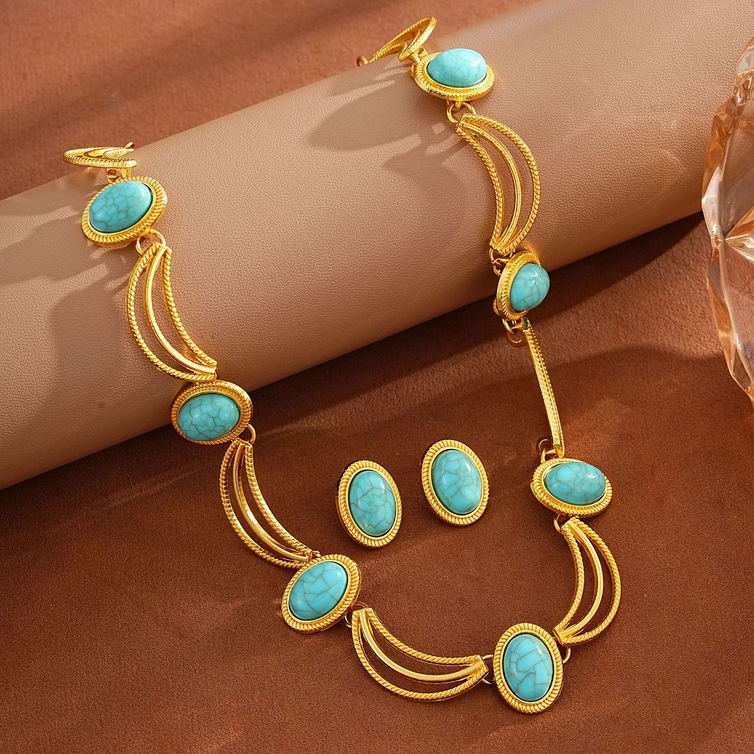 18K Gold Overlay Turquoise Necklace & Earrings Set