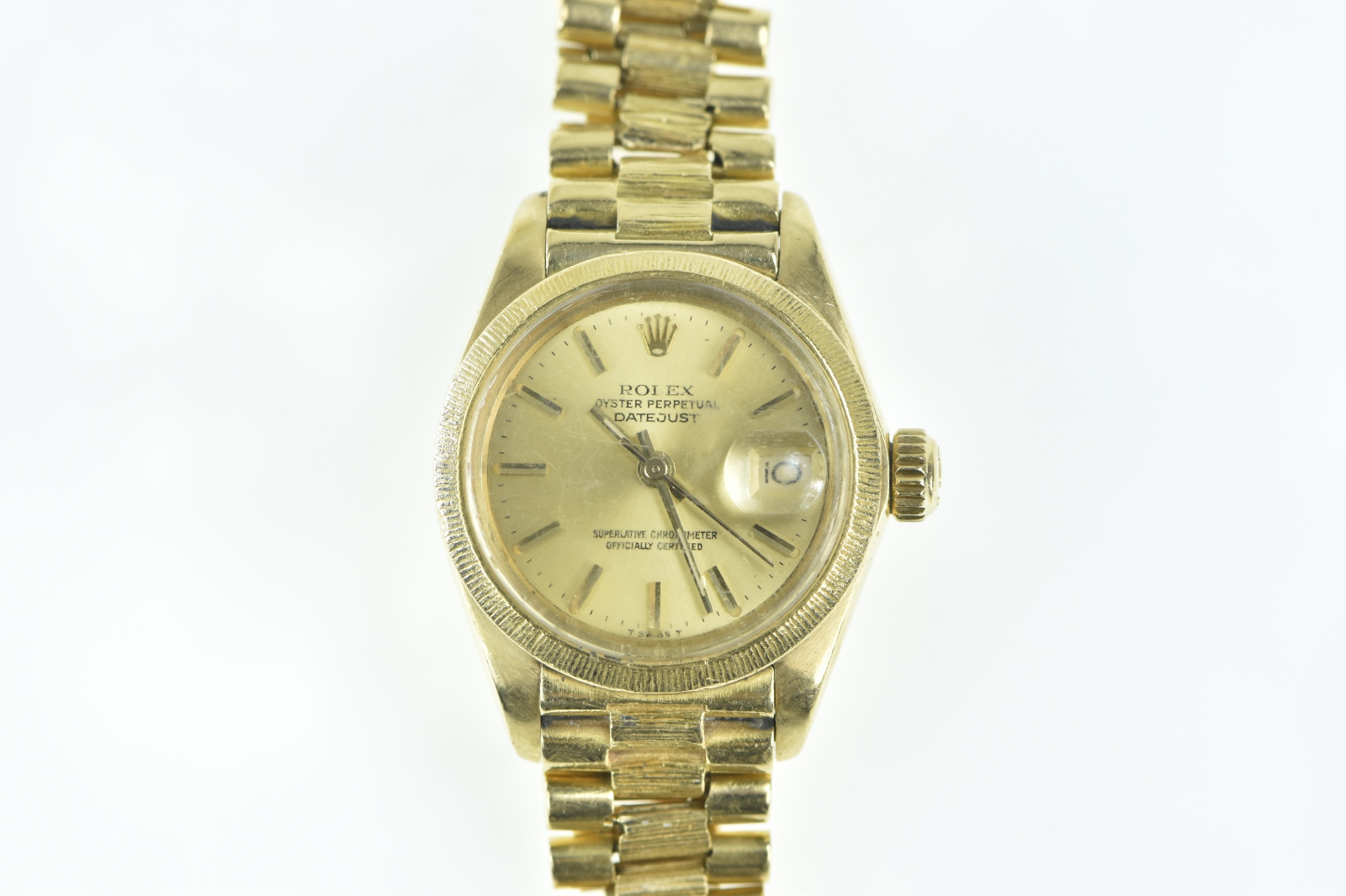 18k Gold Rolex Datejust 26mm 6927 Bark Bezel 1980's Watch - Women's