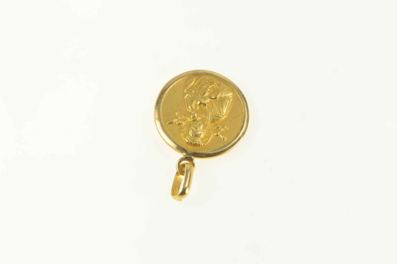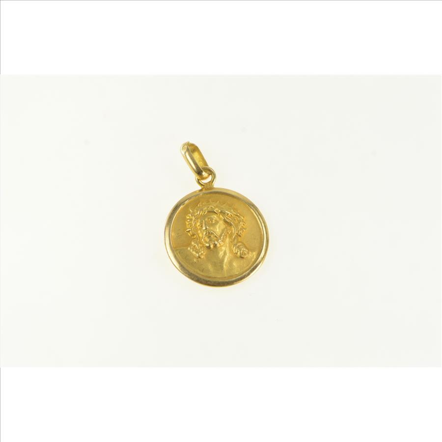 Item:  18K Jesus Christ Crown of Thorns Virgin Mary Yellow Gold Charm/Pendant