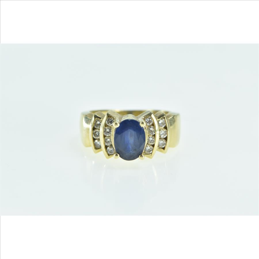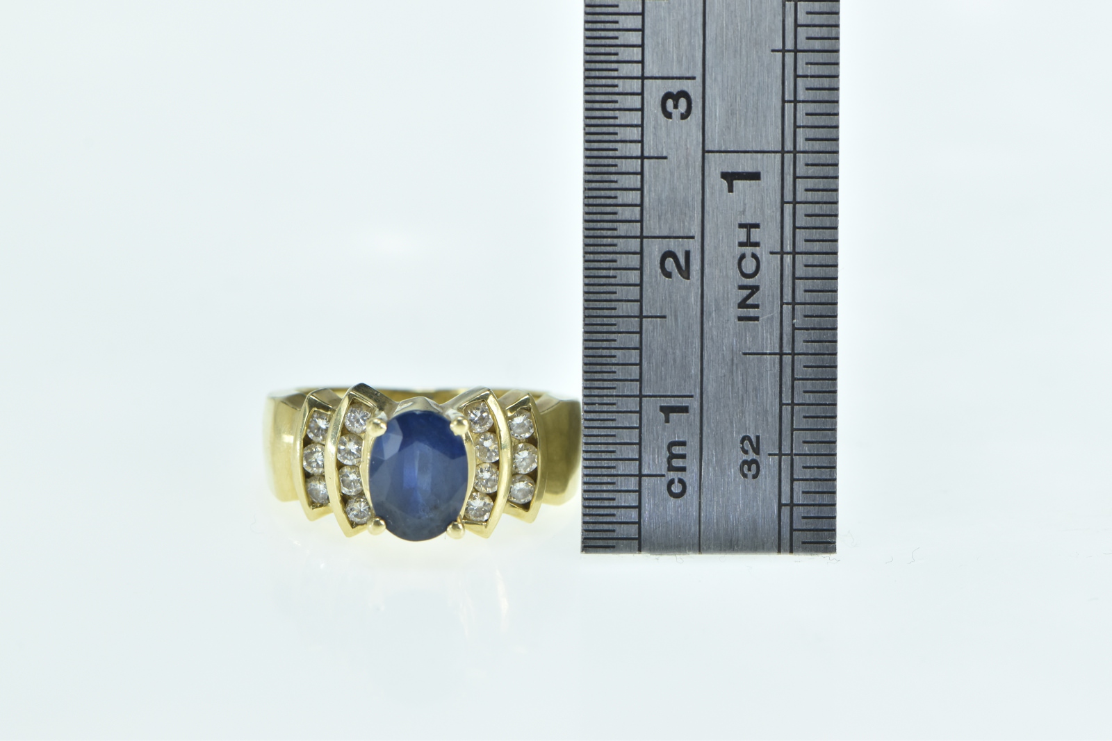 Item:  18K LeVian Oval Natural Sapphire Diamond Statement Yellow Gold Ring, Size 5.5