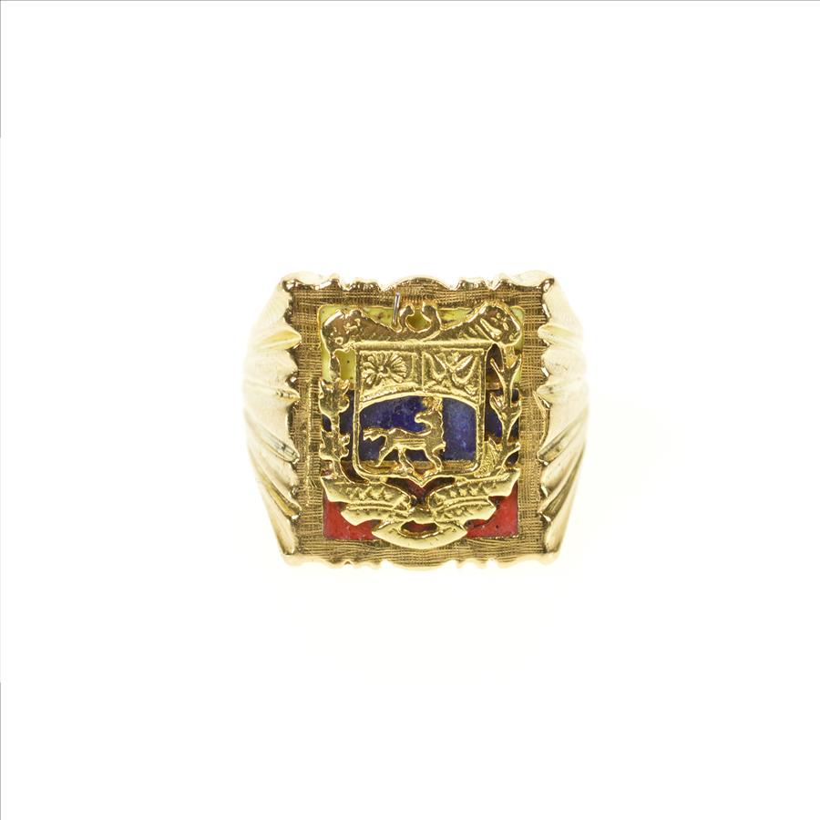 Item:  18K Men's Stag Heraldic Coat of Arms Statement Yellow Gold Ring, Size 10
