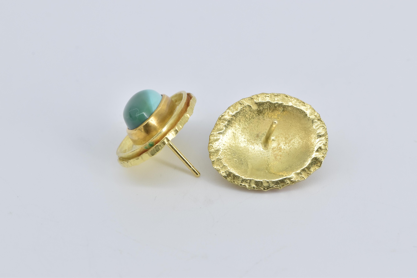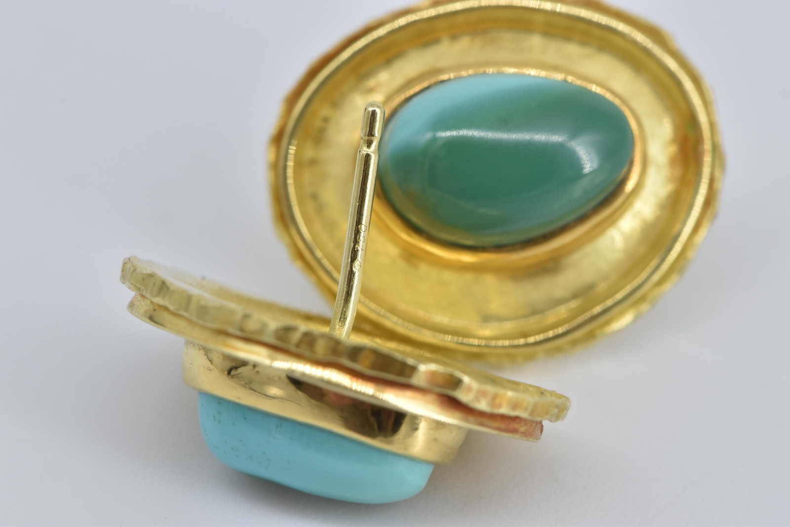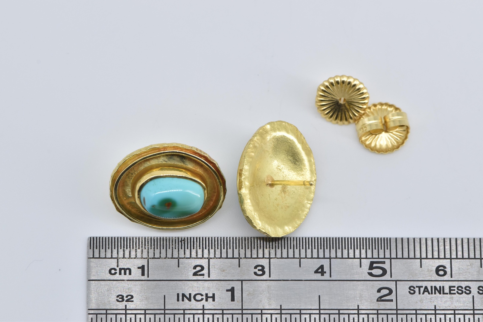 Item:  18K Natural Turquoise Ornate Bezel Statement Stud Yellow Gold Earrings
