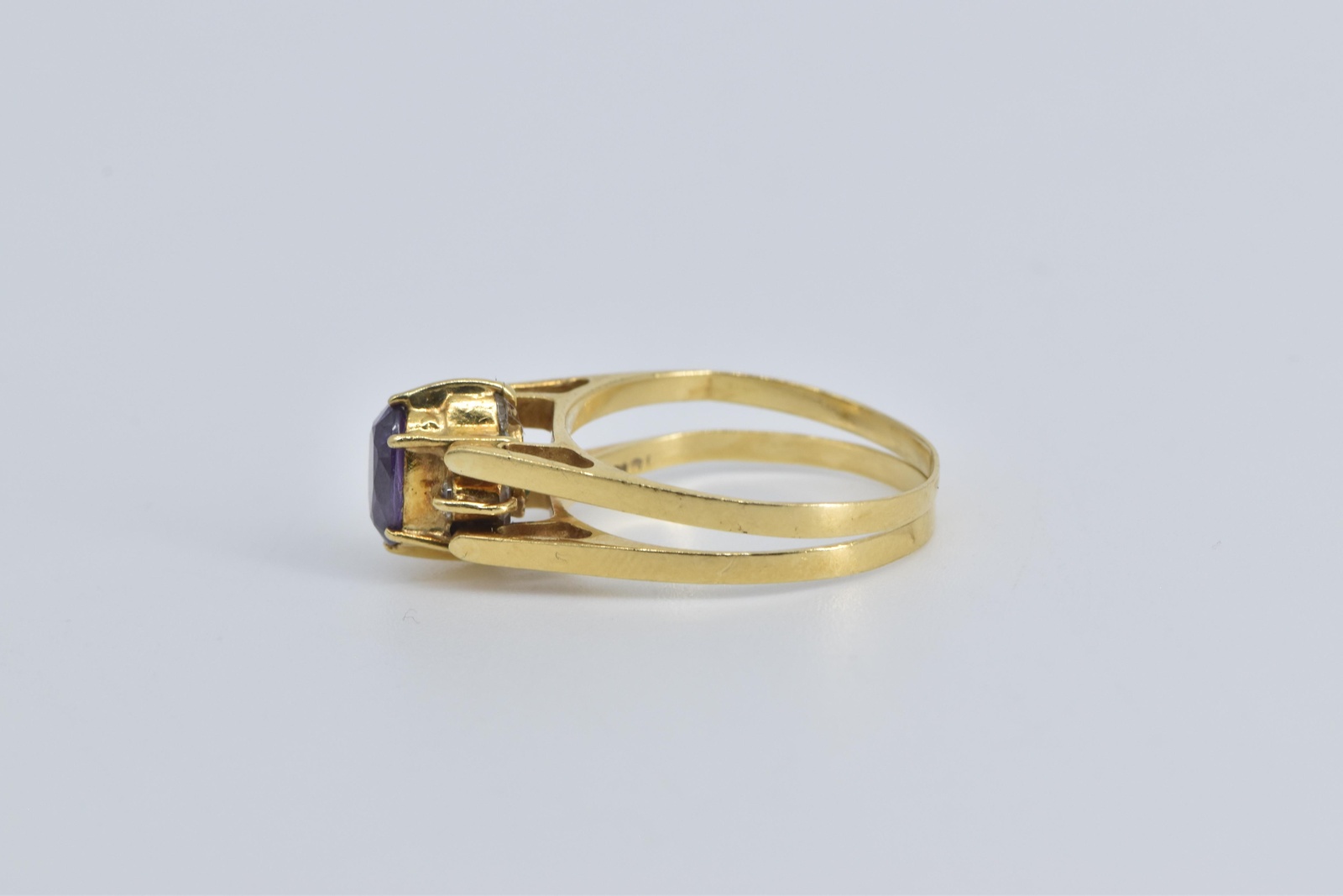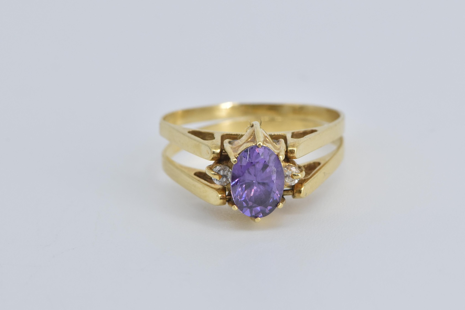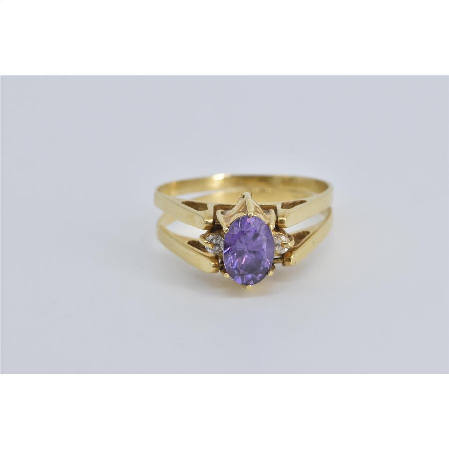 18K Oval Amethyst CZ Reversible Emerald Yellow Gold Ring, Size 6.75