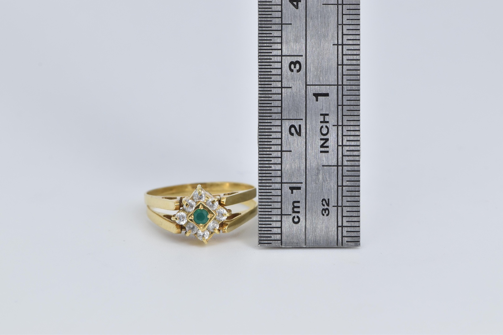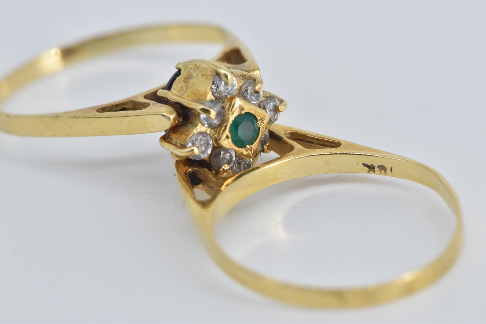 Gem Stone:  10x=Cubic Zirconia 1x=Synthetic Emerald 1x=Amethyst