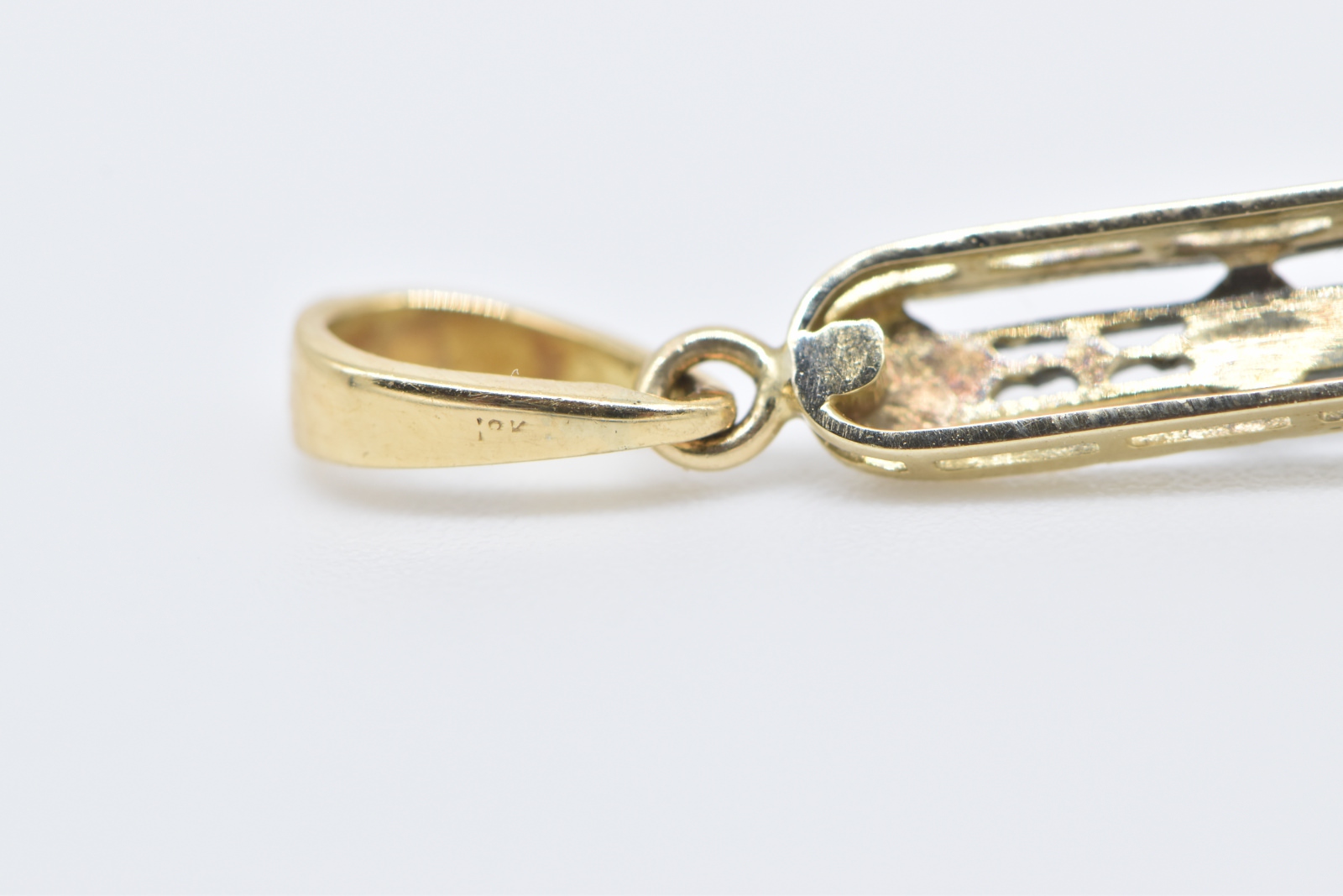 18K Oval Amethyst Ornate Art Deco Filigree Drop Yellow Gold Pendant