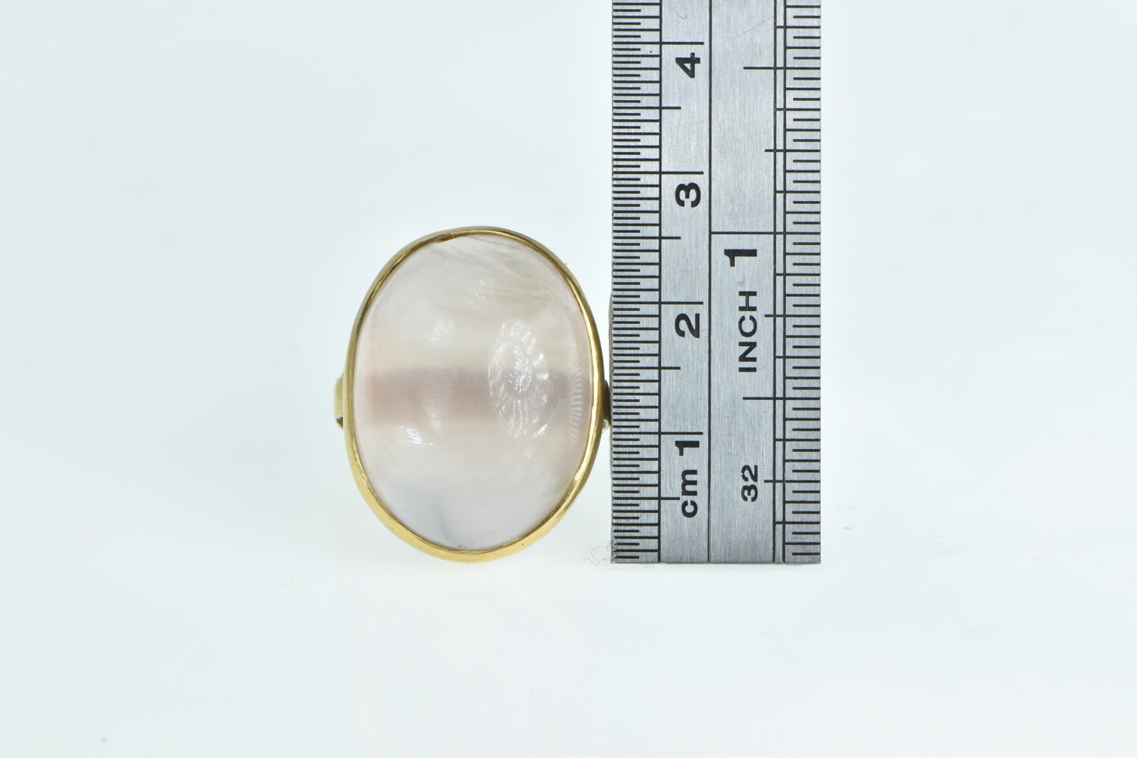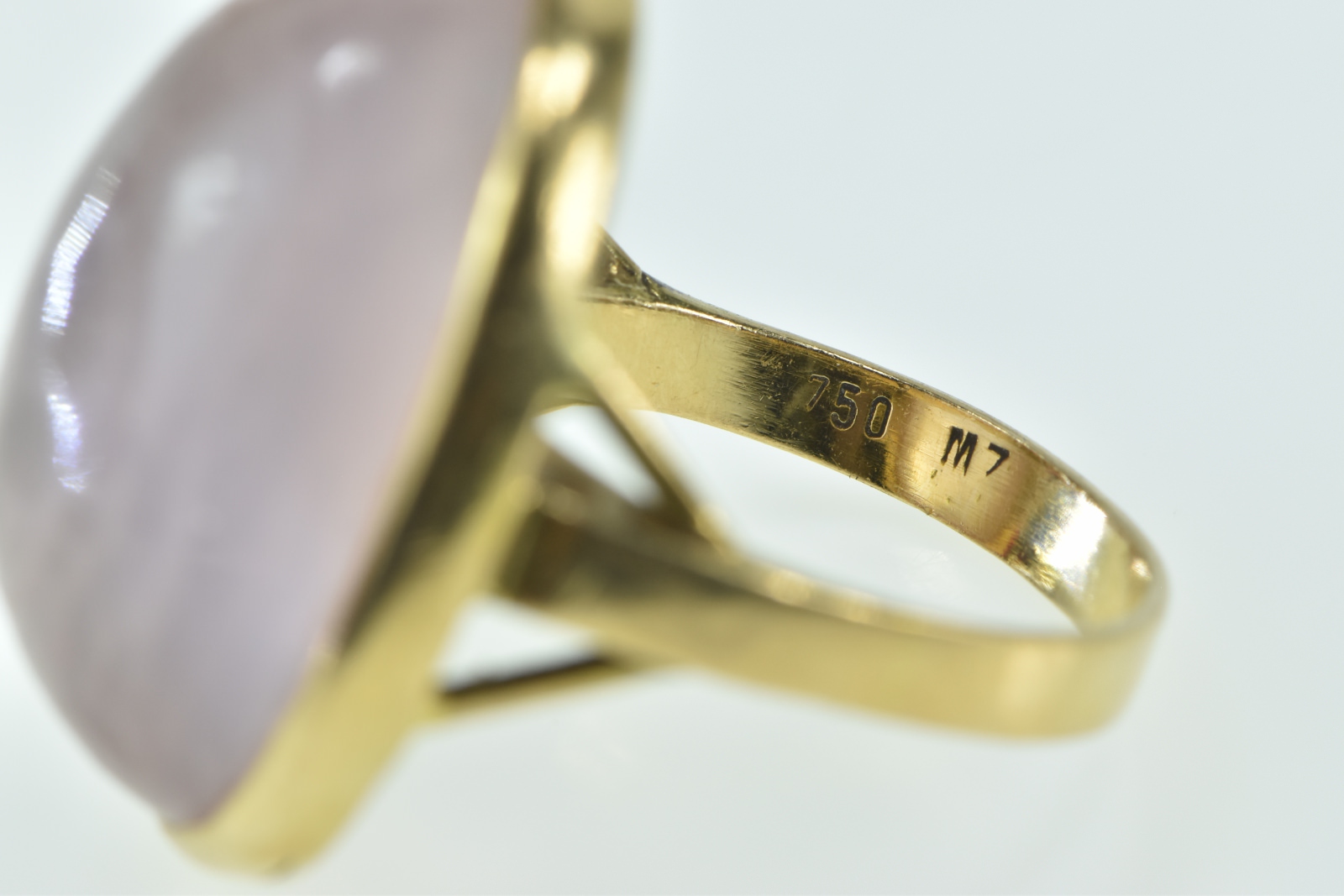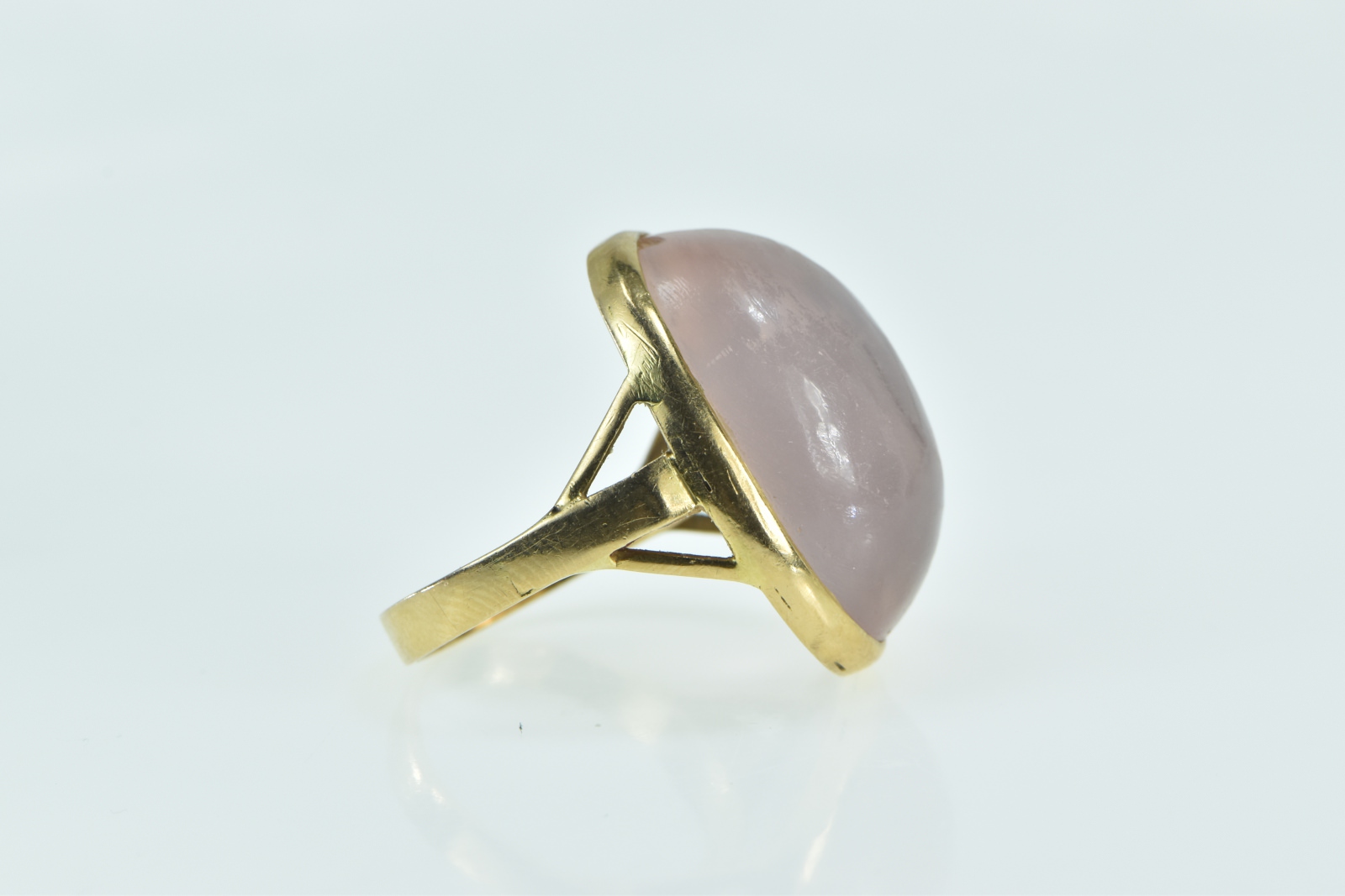 18K Oval Rose Quartz Cabochon Statement Yellow Gold Ring, Size 8.75