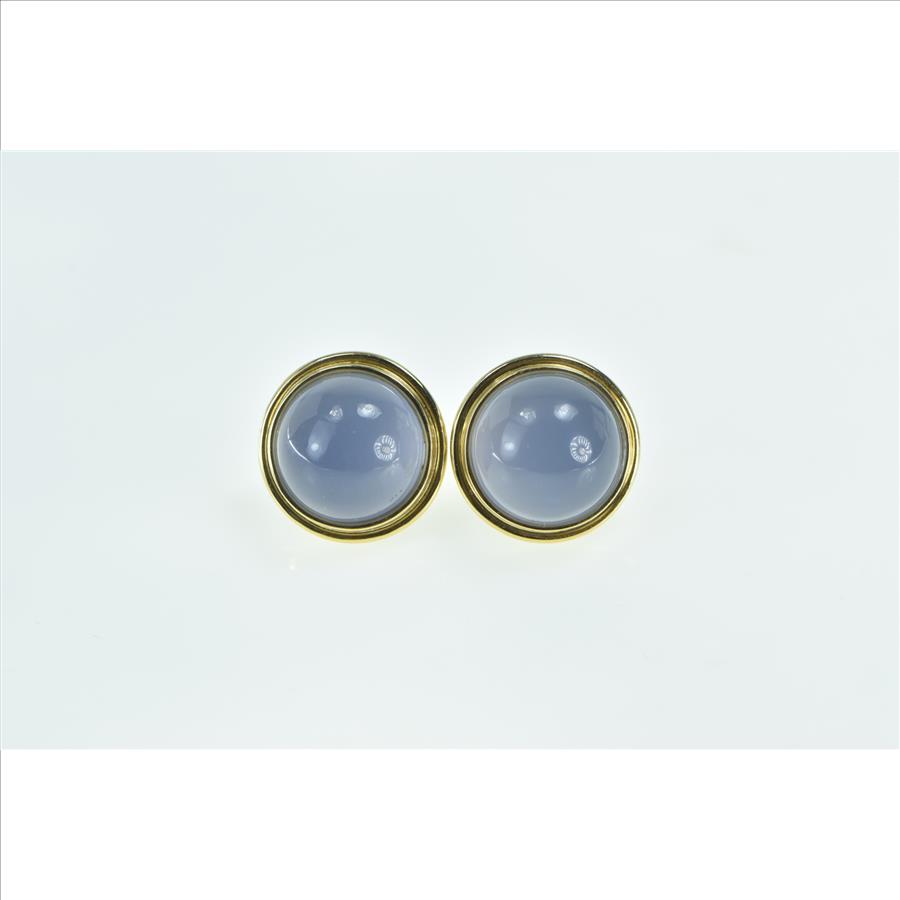 Item:  18K Purple Moonstone Cabochon Round Vintage Stud Yellow Gold Earrings