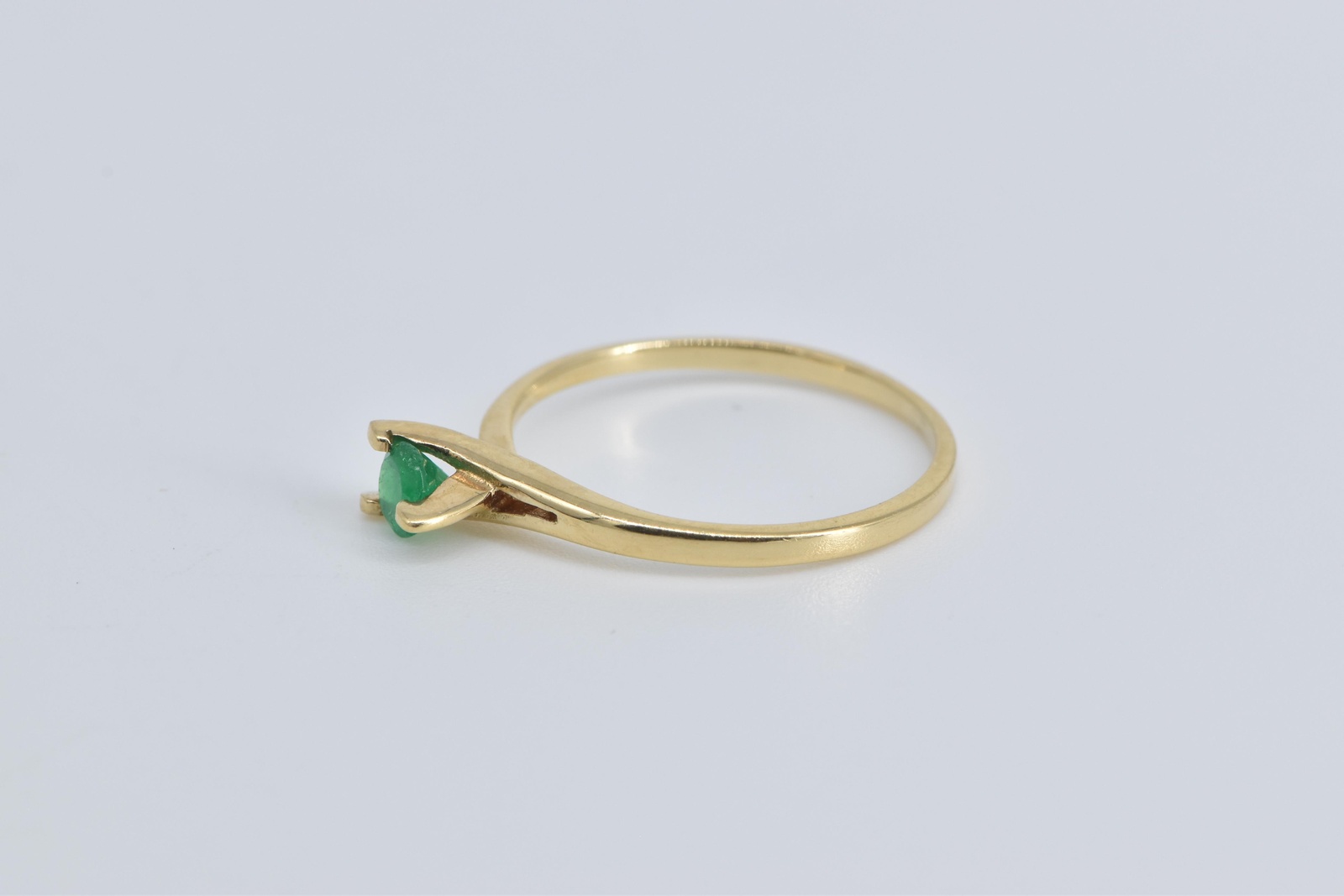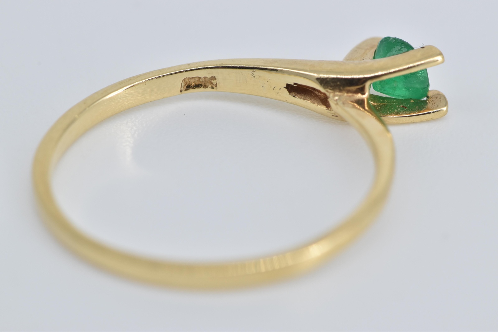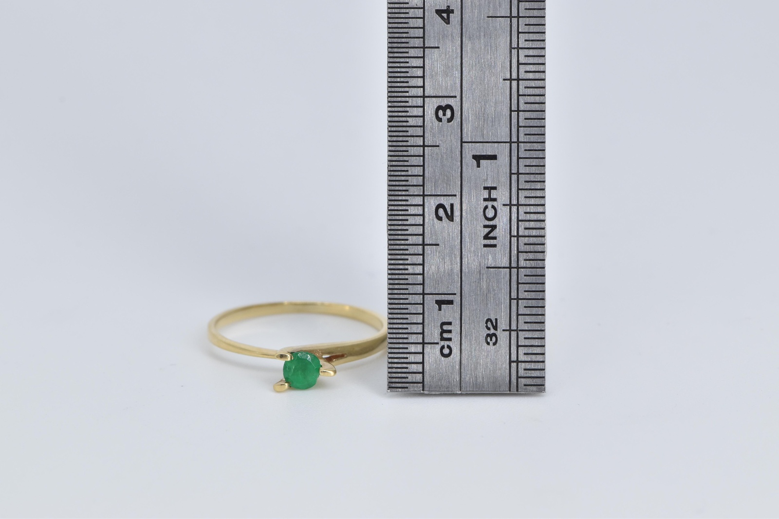 18K Round Natural Emerald Pressure Set Engagement Yellow Gold Ring, Size 7.25