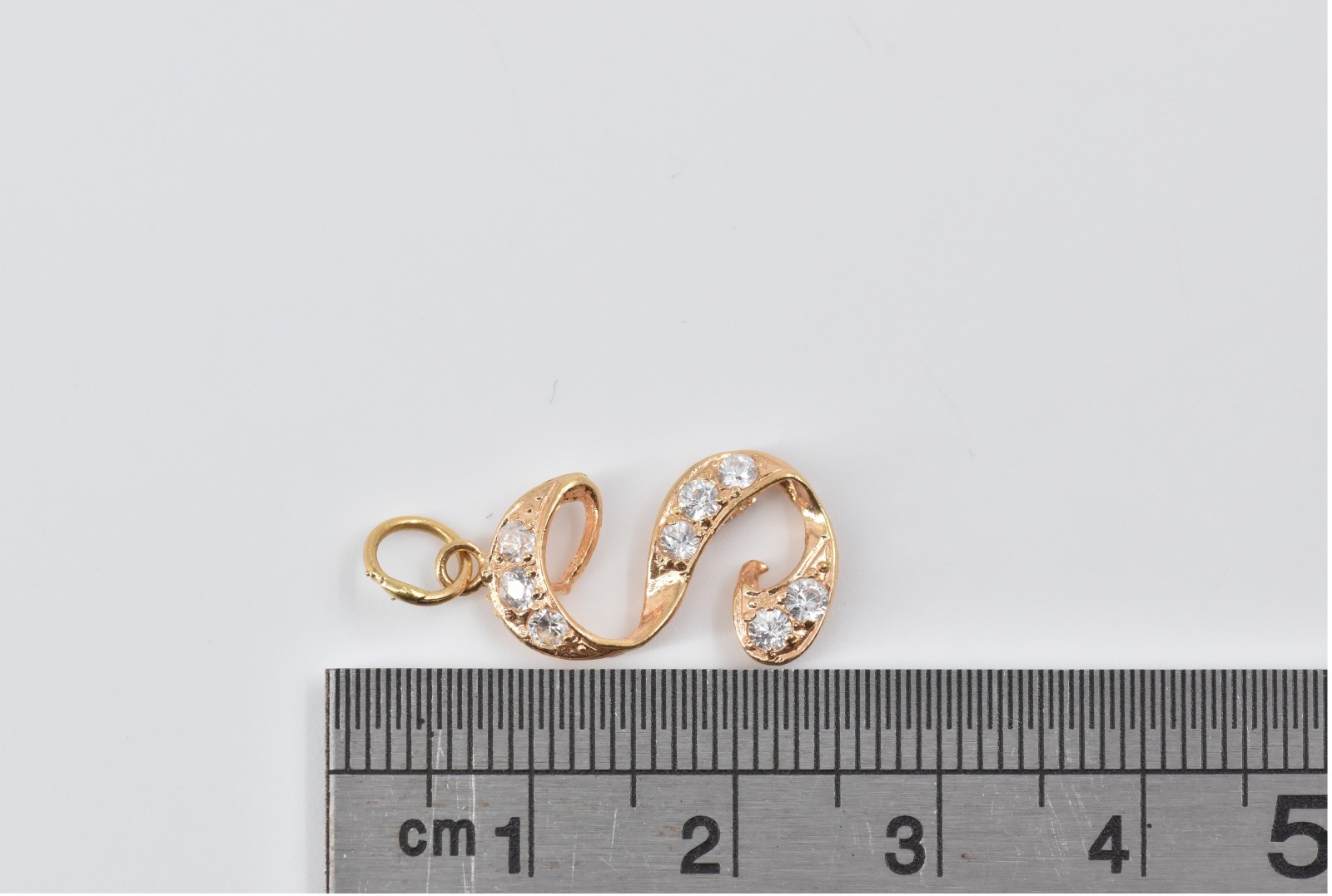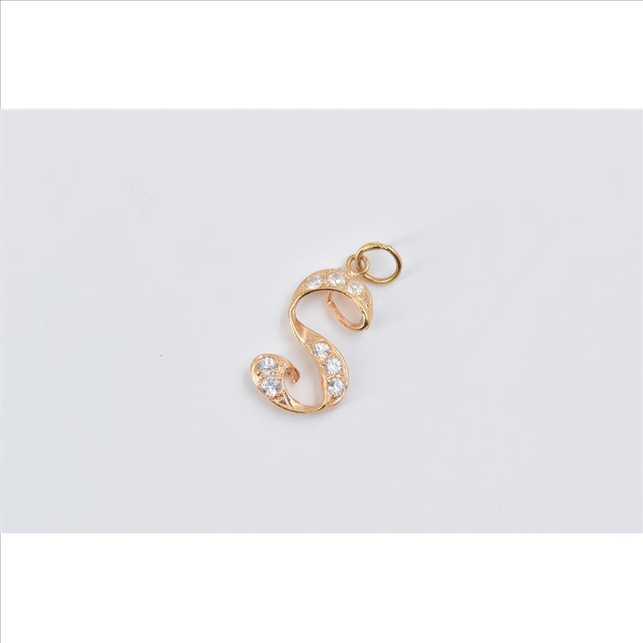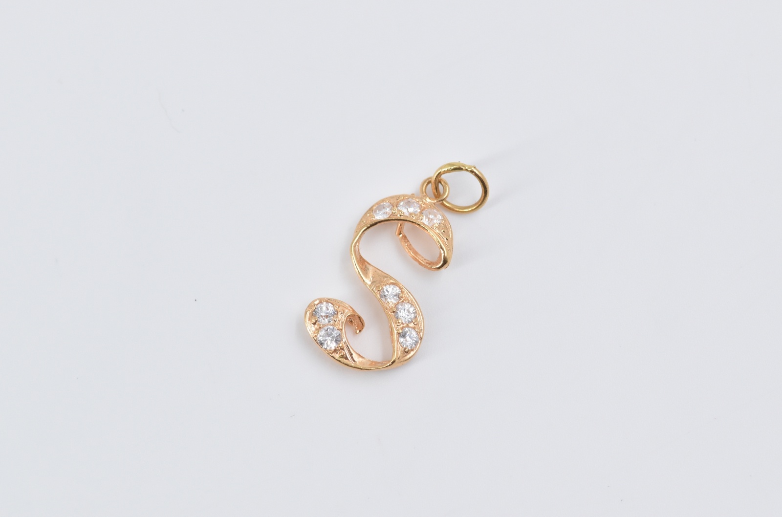 Item:  18K S Letter Monogram CZ Enrusted Name Initial Yellow Gold Charm/Pendant