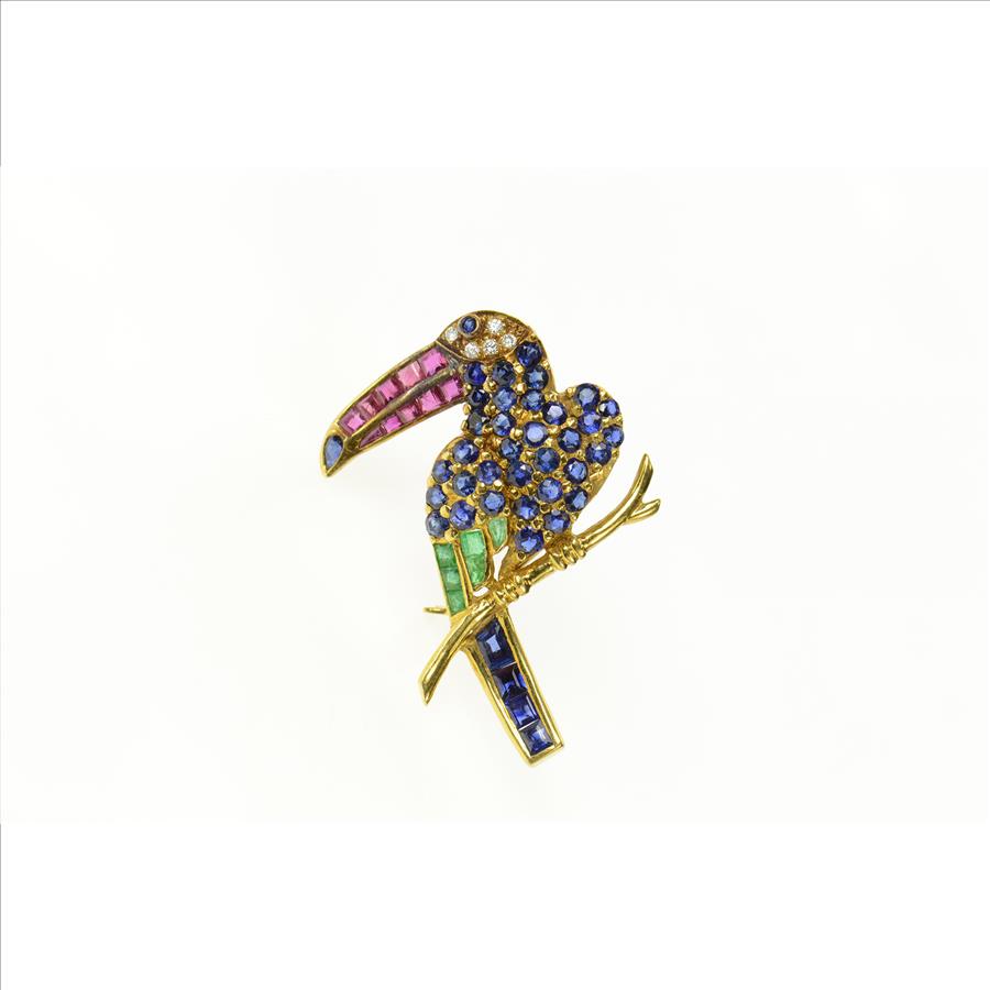 18K Sapphire Diamond Ruby Emerald Parrot Yellow Gold Pin/Brooch