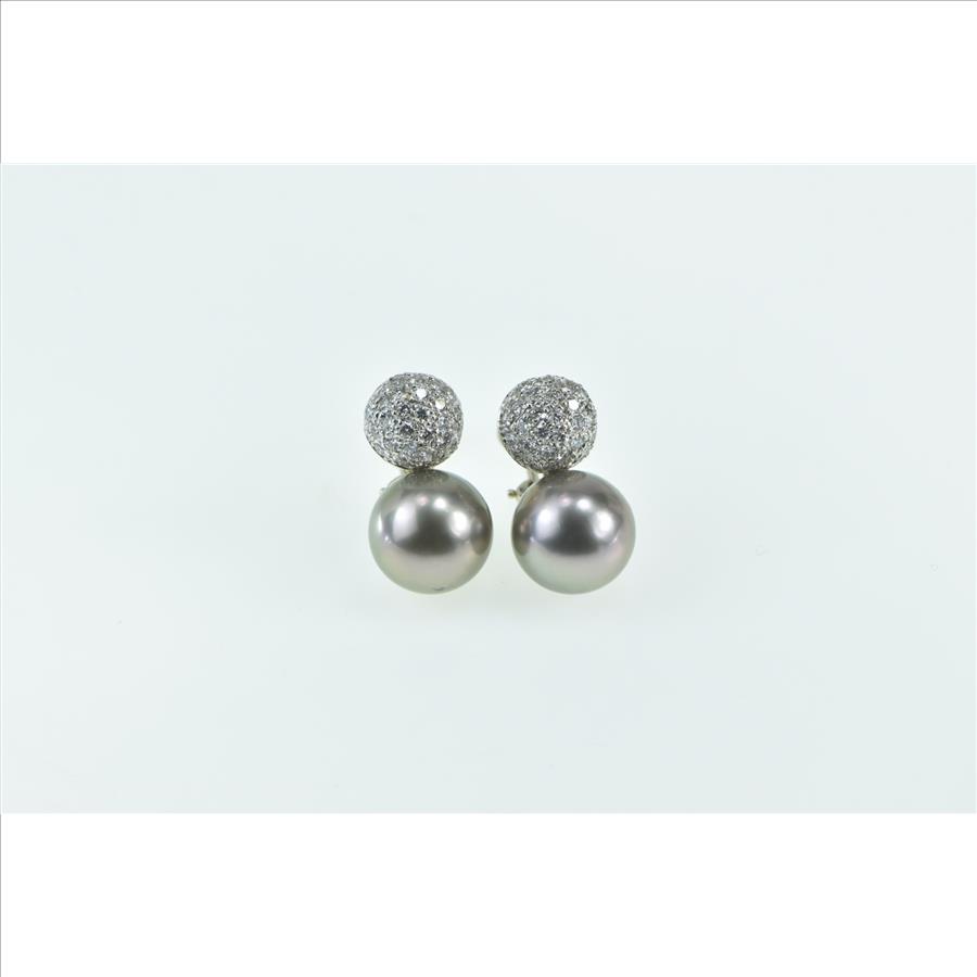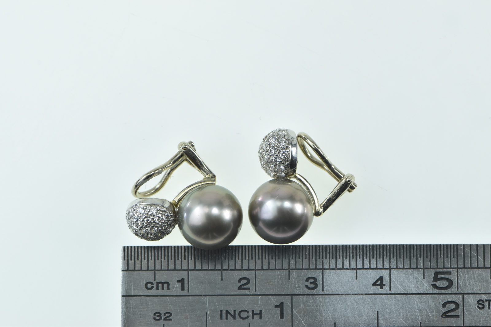 Item:  18K Spark 10mm Tahitian Pearl Diamond Clip Back White Gold Earrings