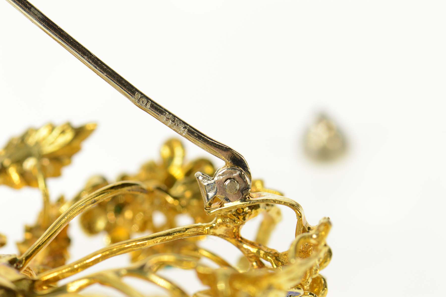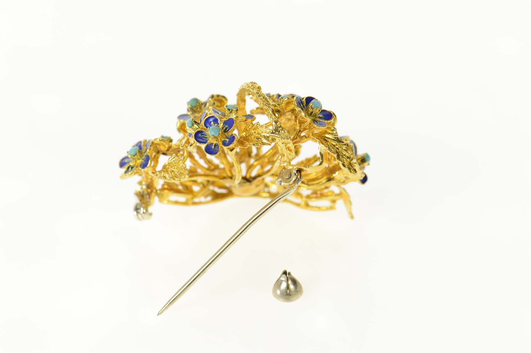 18K Turquoise Enamel Flower Bouquet Basket Yellow Gold Pin/Brooch