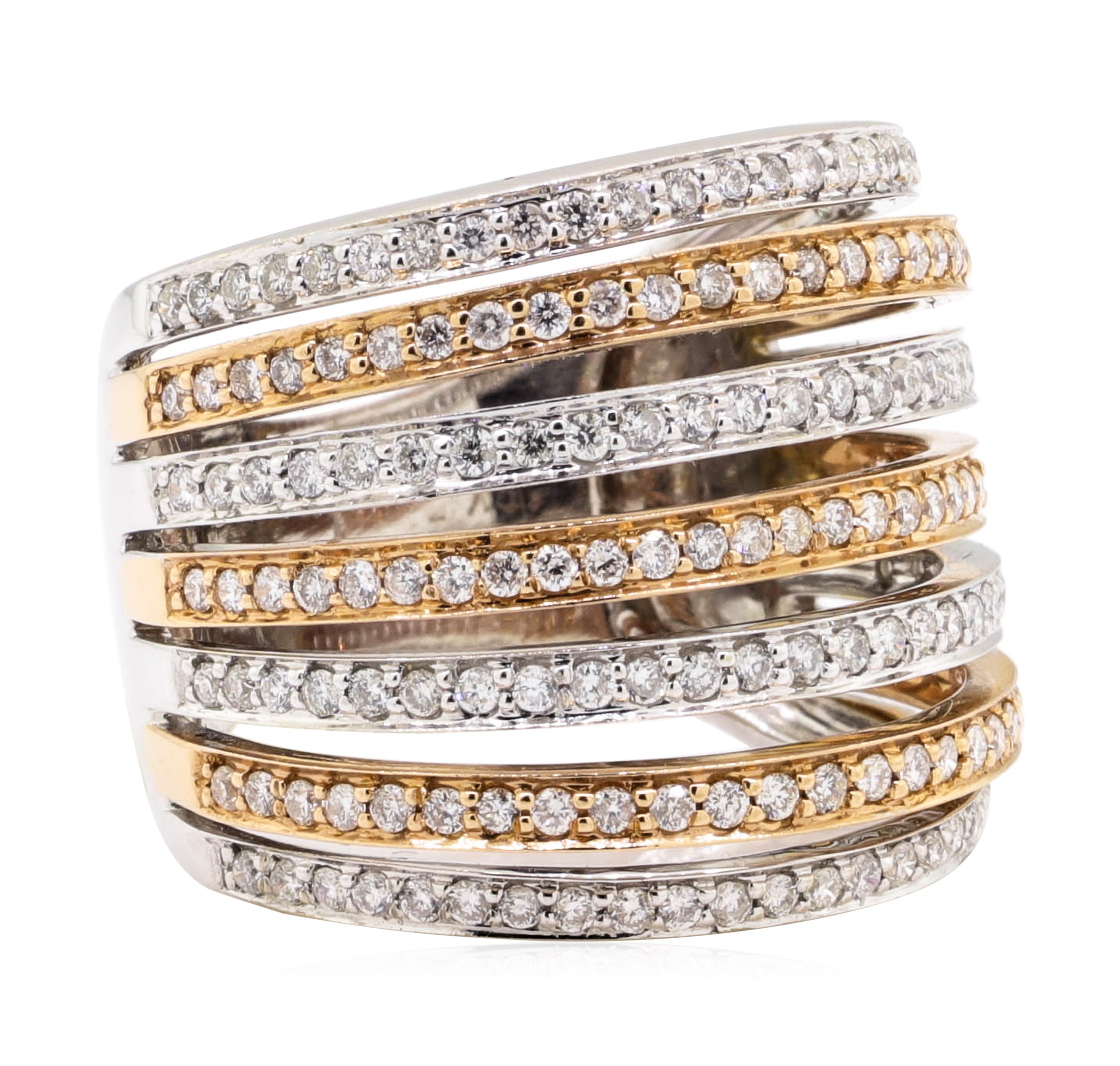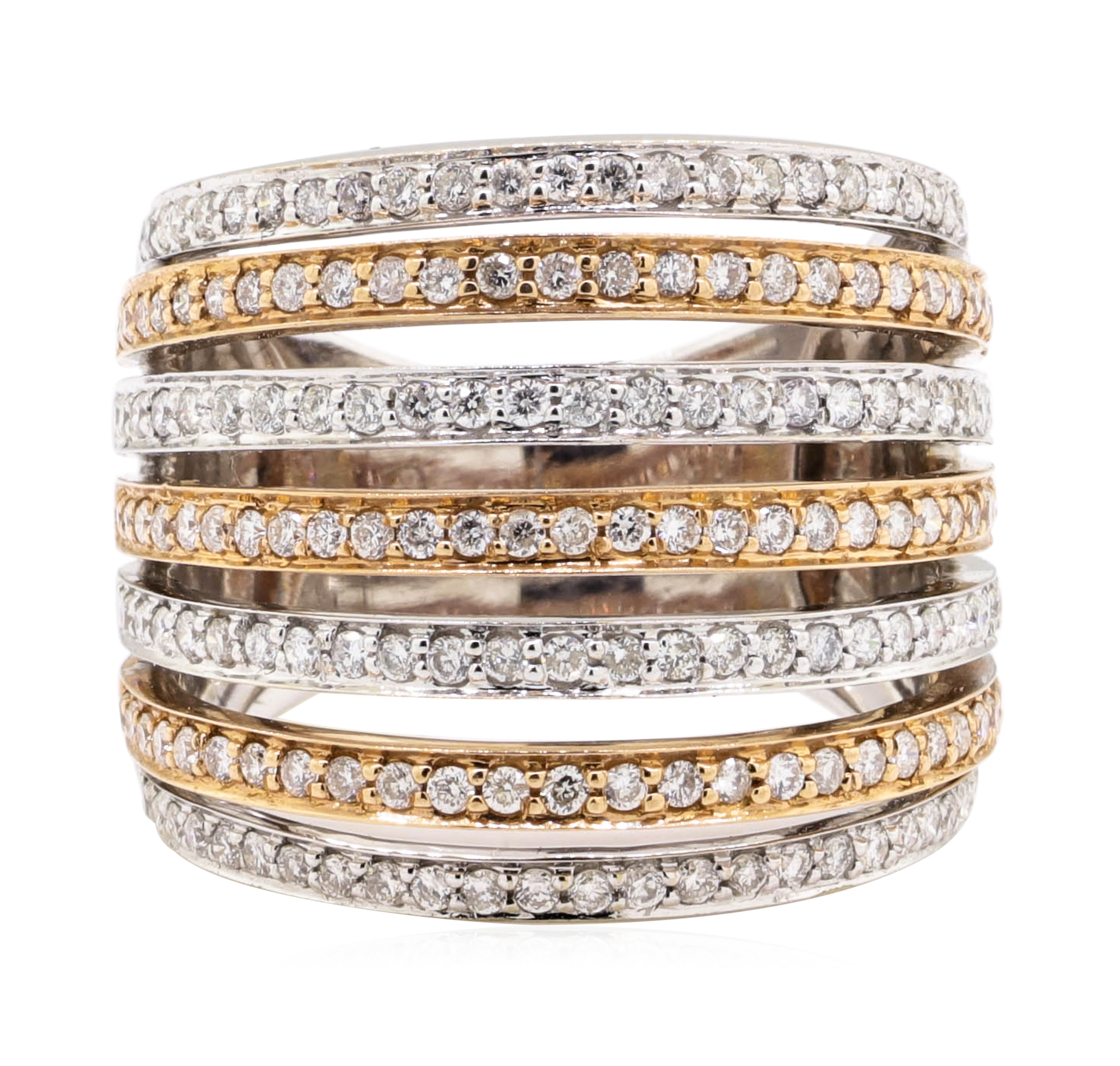 18K Two Tone Gold 10.50 Grams Seven Row Style Diamond Ring