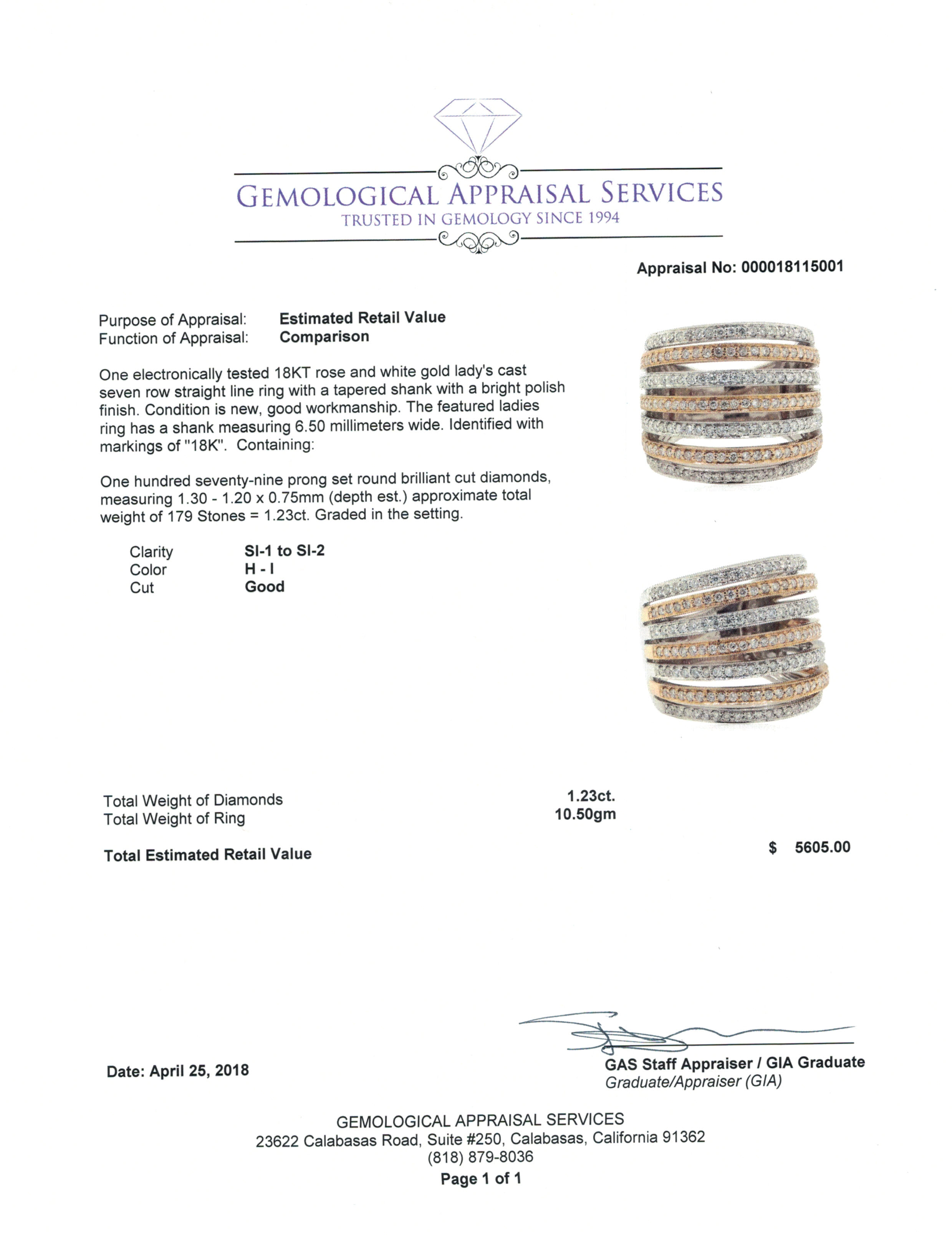 Diamond Weight: 1.23 Carats t.w.