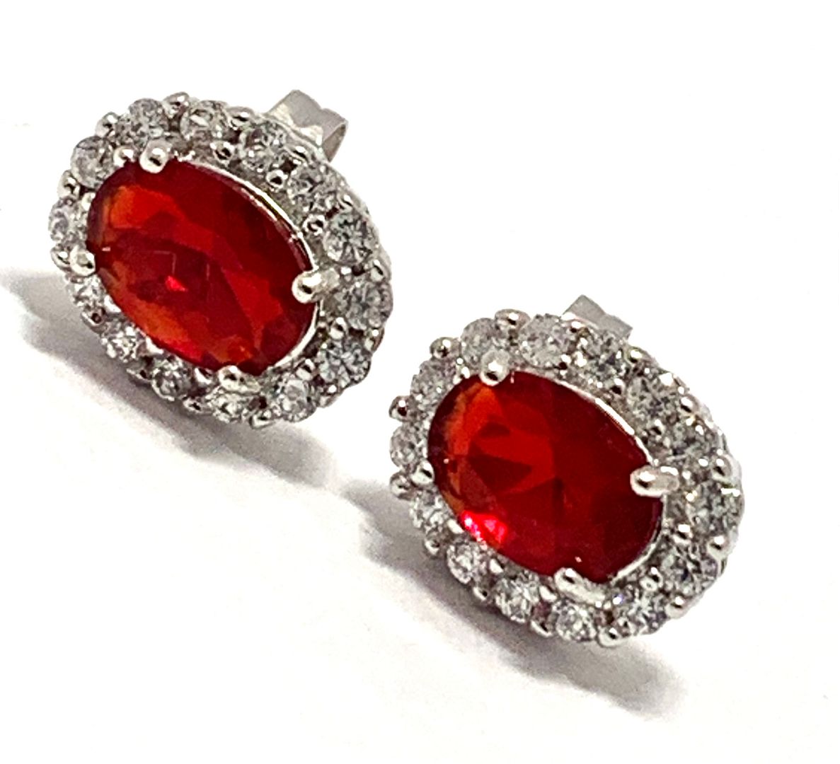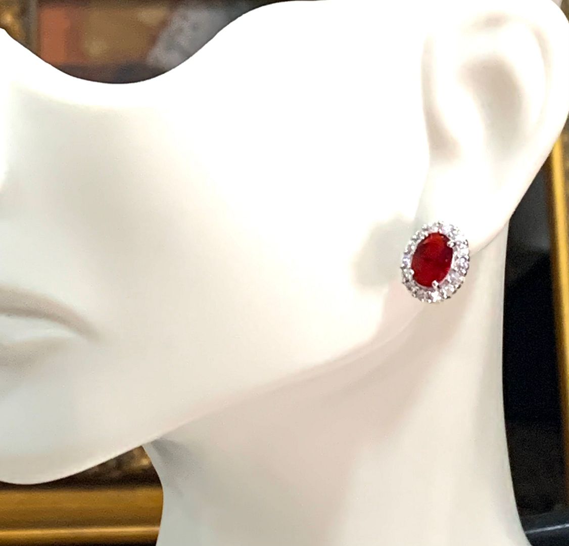 18k White Gold & Fine Jewelry Bronze 3.0 ctw Garnet & White Crystal Stud Earrings