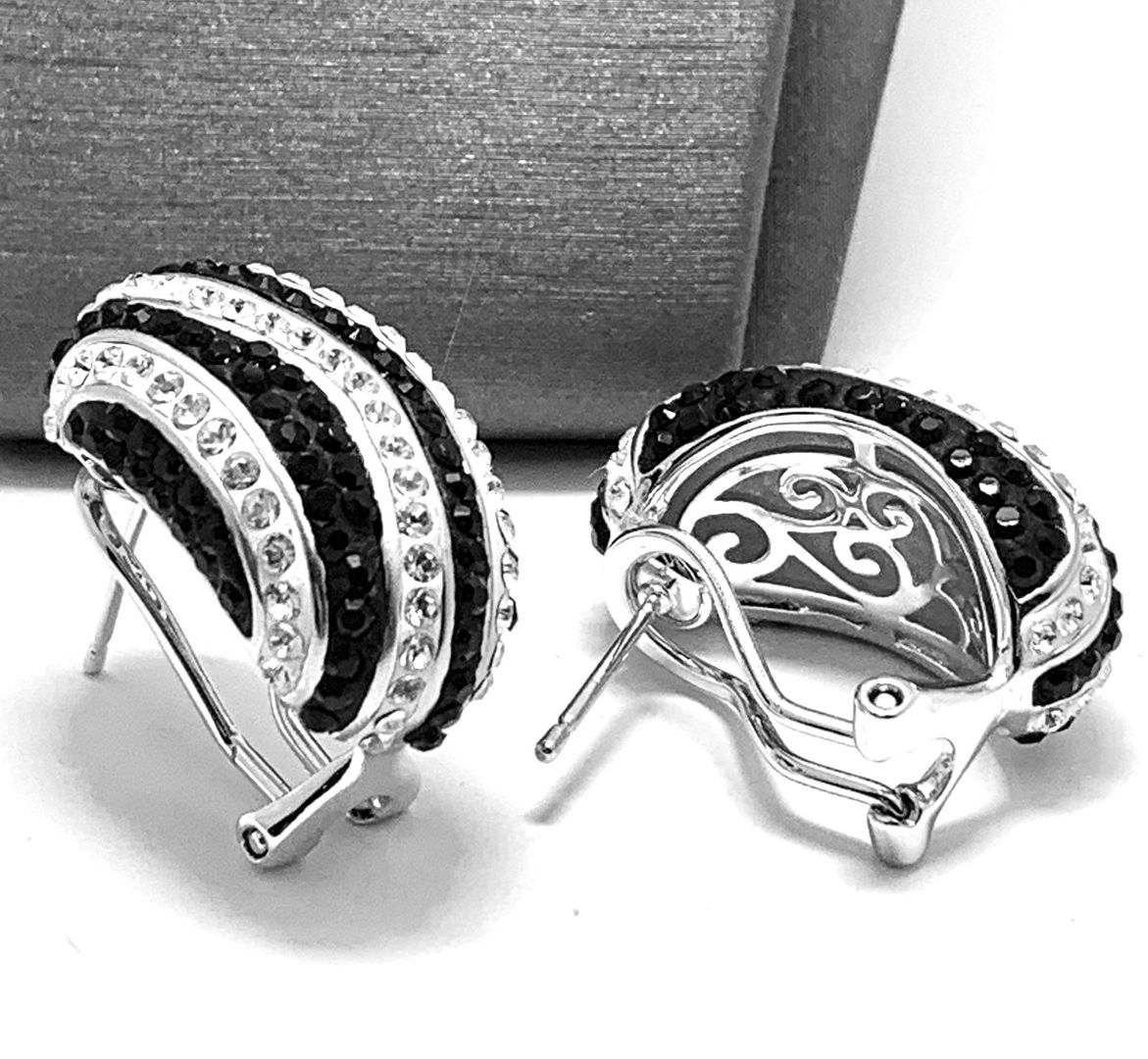 18k White Gold & Fine Jewelry Bronze 3.00ctw Black & White Natural Crystal Omega Backs Earrings