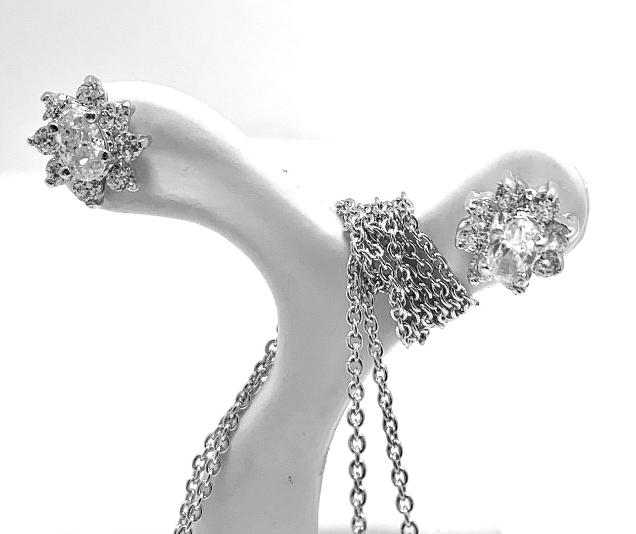 18k White Gold & Fine Jewelry Bronze 8.00ctw White Crystal Necklace & Stud Earrings Set
