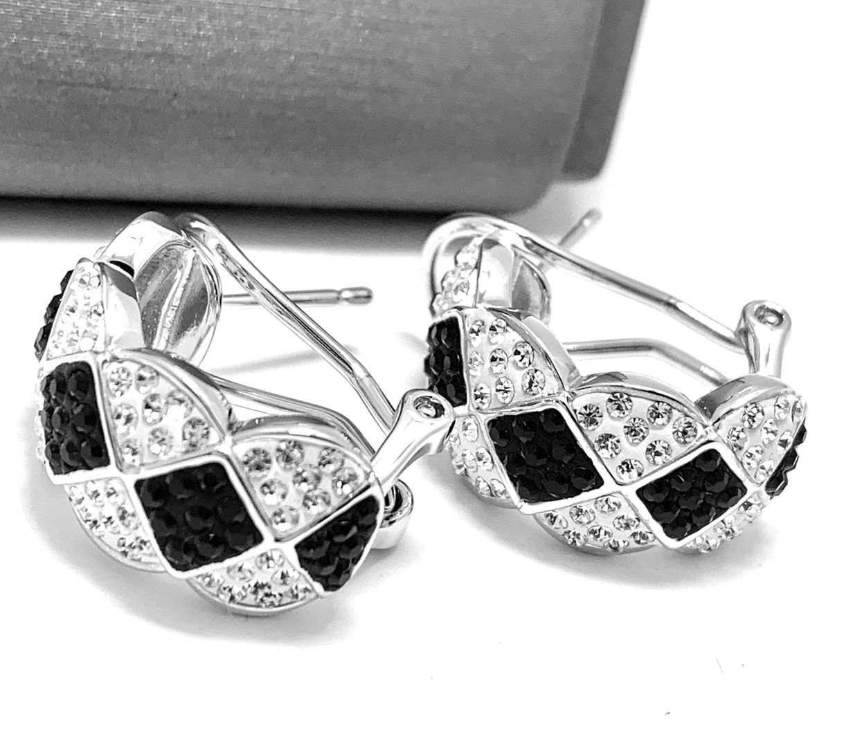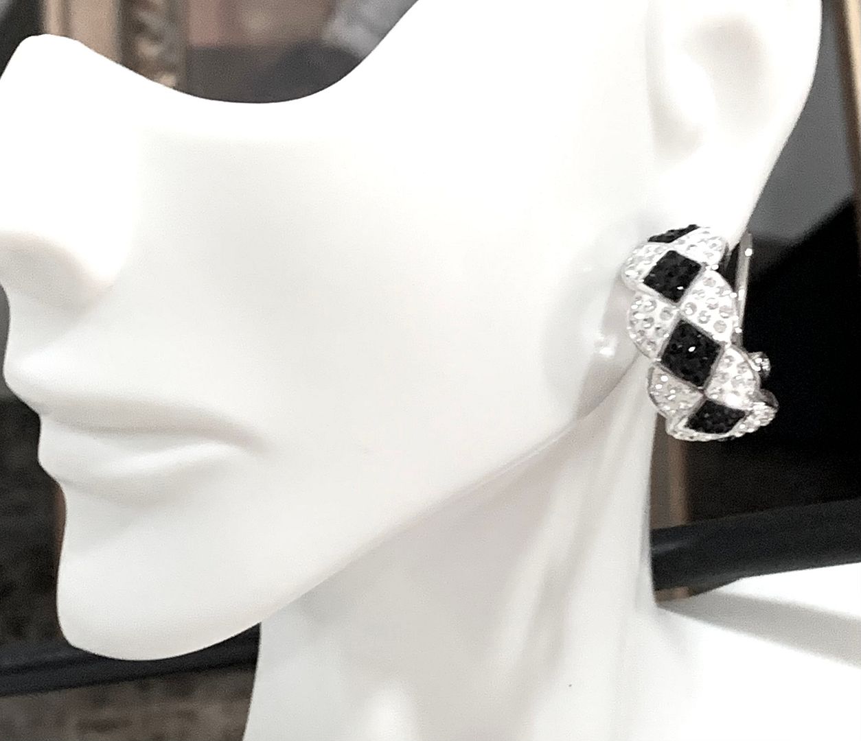 18k White Gold & Jewelry Bronze 3.00ctw Black & White Crystal Hoop Earrings