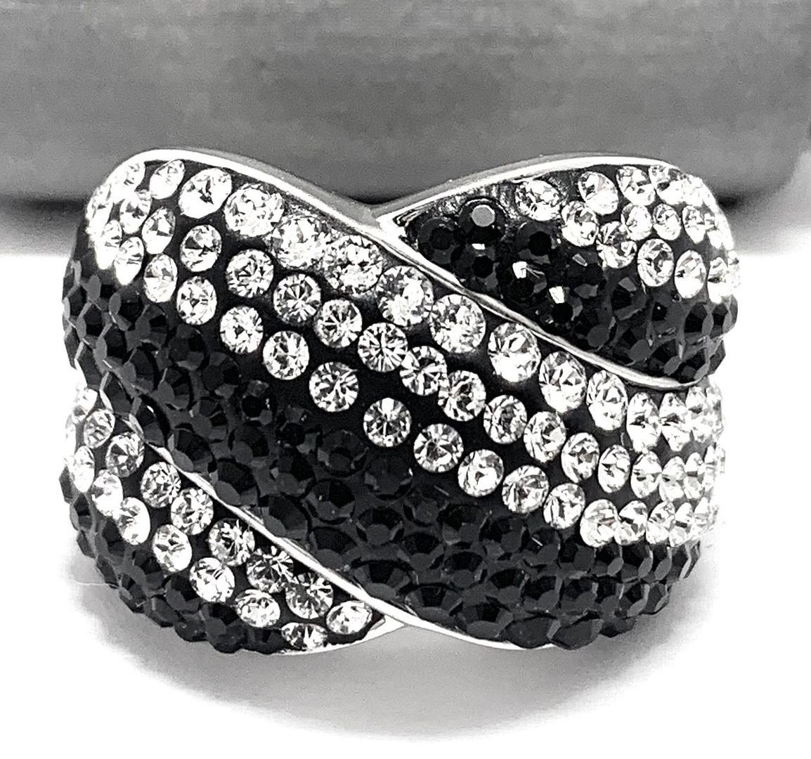 18k White Gold & Jewelry Bronze 3.00ctw Black & White Natural Crystal Ring