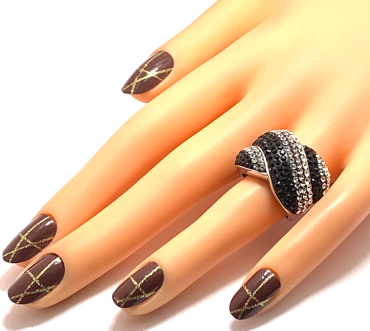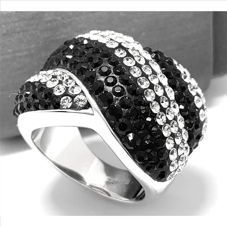 18k White Gold & Jewelry Bronze 3.00ctw Black & White Natural Crystal Ring