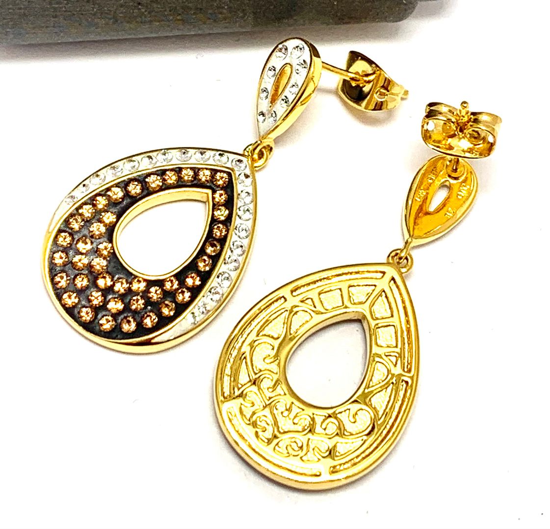 18k Yellow Gold & Jewelry Bronze 3.00ctw Cognac & White Natural Crystal Earrings