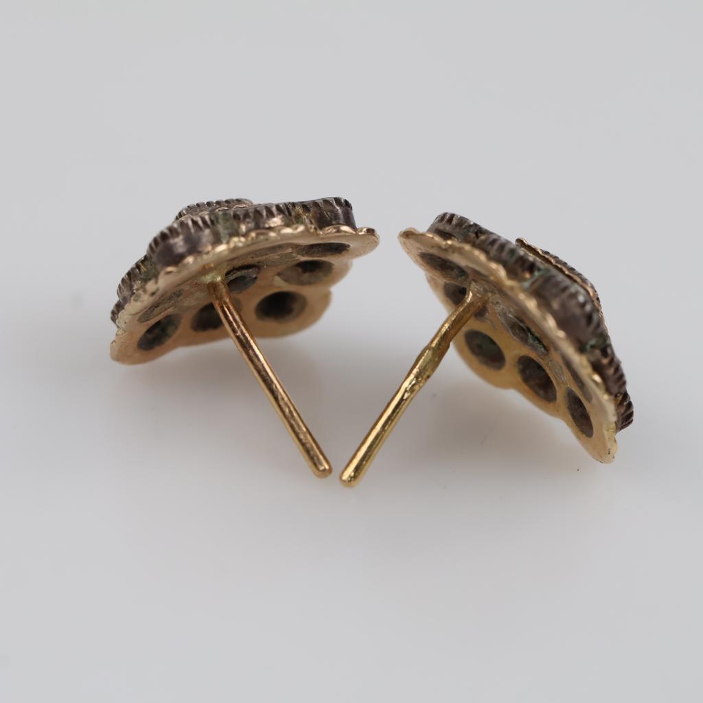 18kt Gold Sterling Silver Accent Diamond Earrings