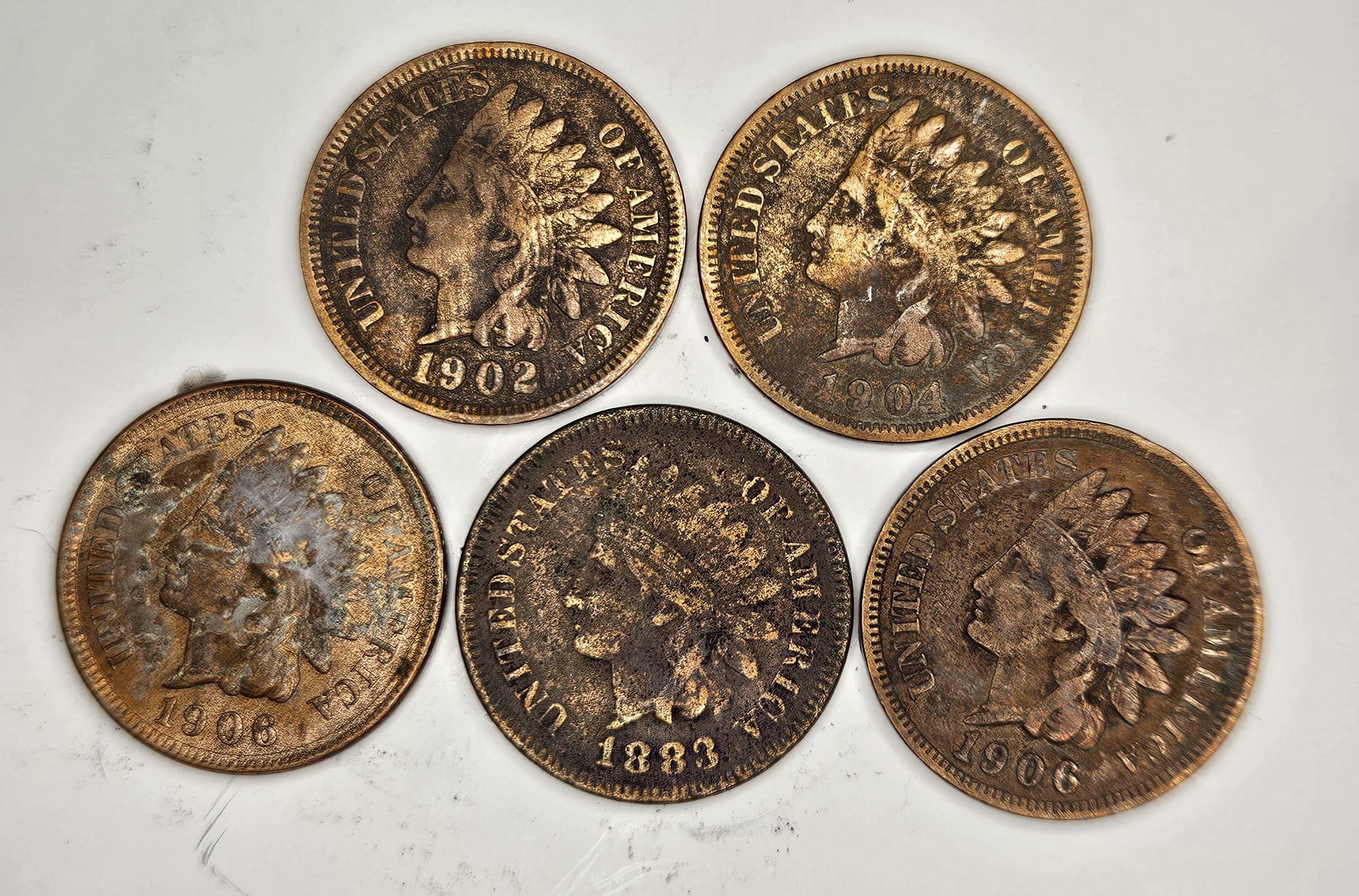 1902-1906-1883-1904-1906 Indian Head Cents- USA Coins