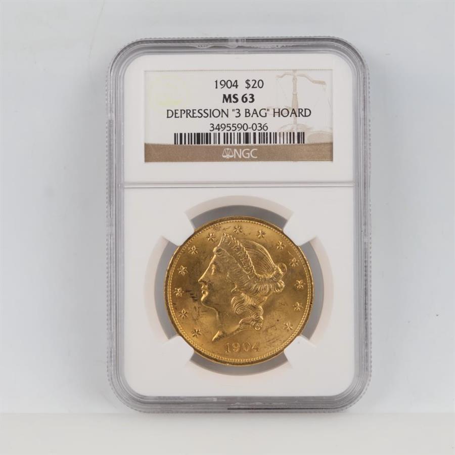 1904 Liberty MS63 Depression "3 Bag" Hoard Gold $20 NGC Graded