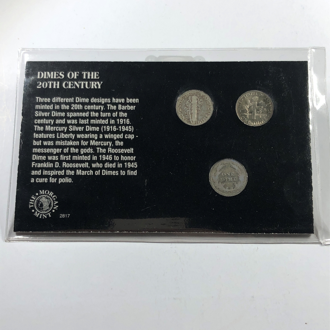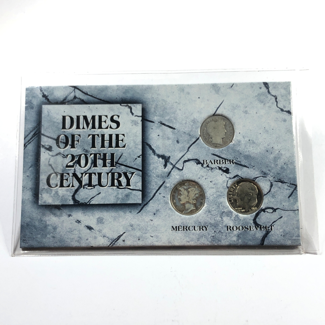 1906 Silver Barber Dime, 1941 Silver Mercury Head Dime and 1973 Roosevelt Dime*Dimes of the 20th Century