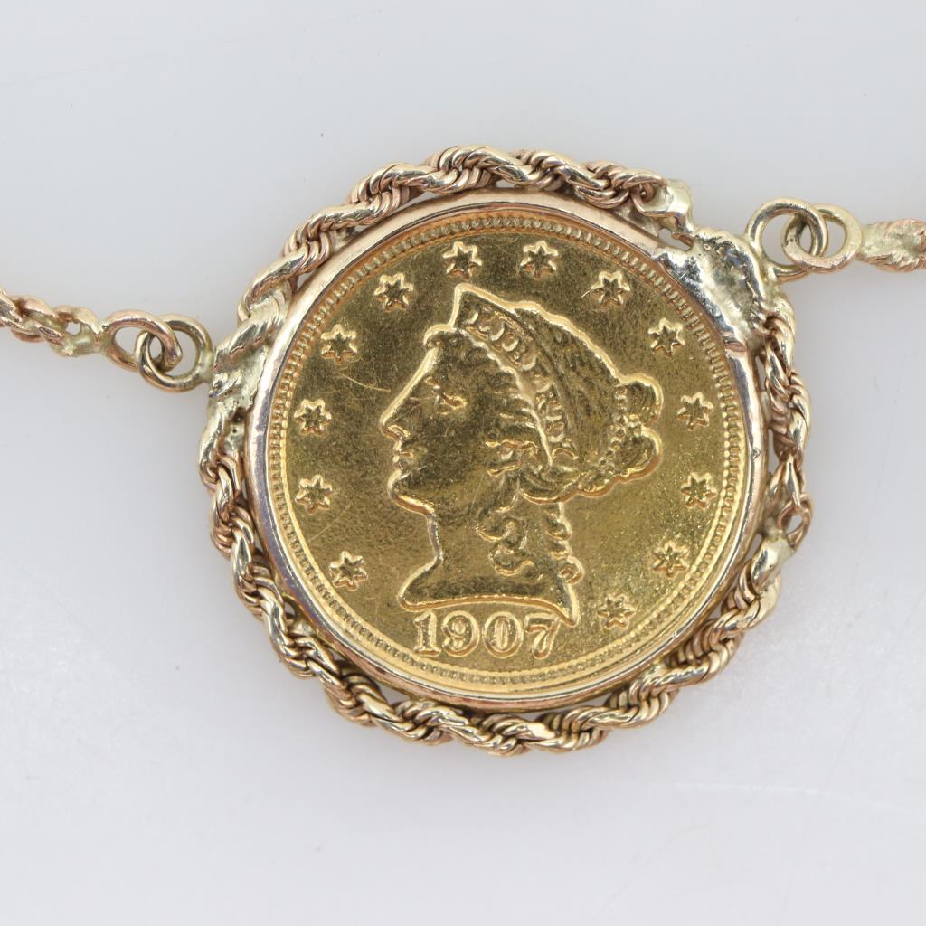 1907 US Liberty Head Gold Coin In 14kt Gold Necklace