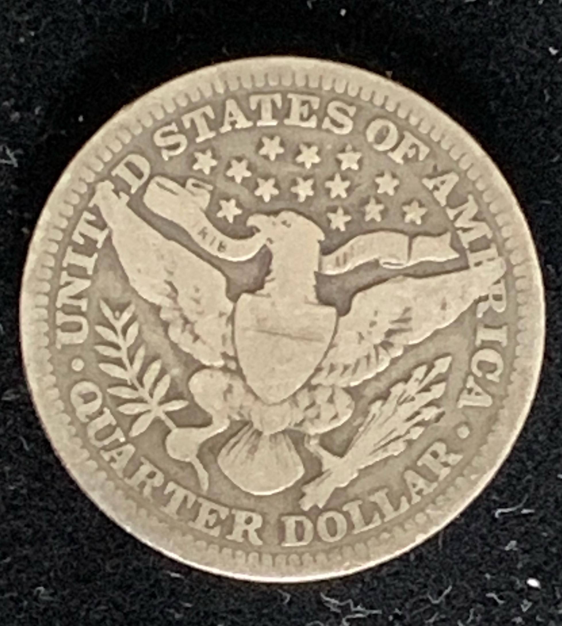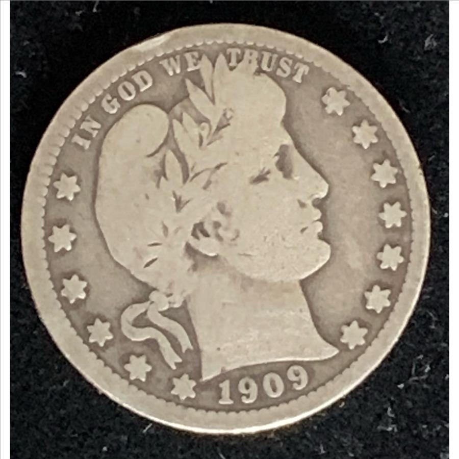 1909 SILVER BARBER QUARTER COIN, LOTS OF DETAIL AND CLARITY