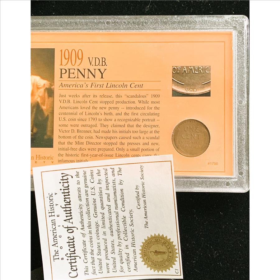 1909 VDB LINCOLN CENT, FIRST LINCOLN PENNY, RARE FIND IN THIS CONDITION, ORIG SEALED HOLDER, COA, REALLY NICE COIN