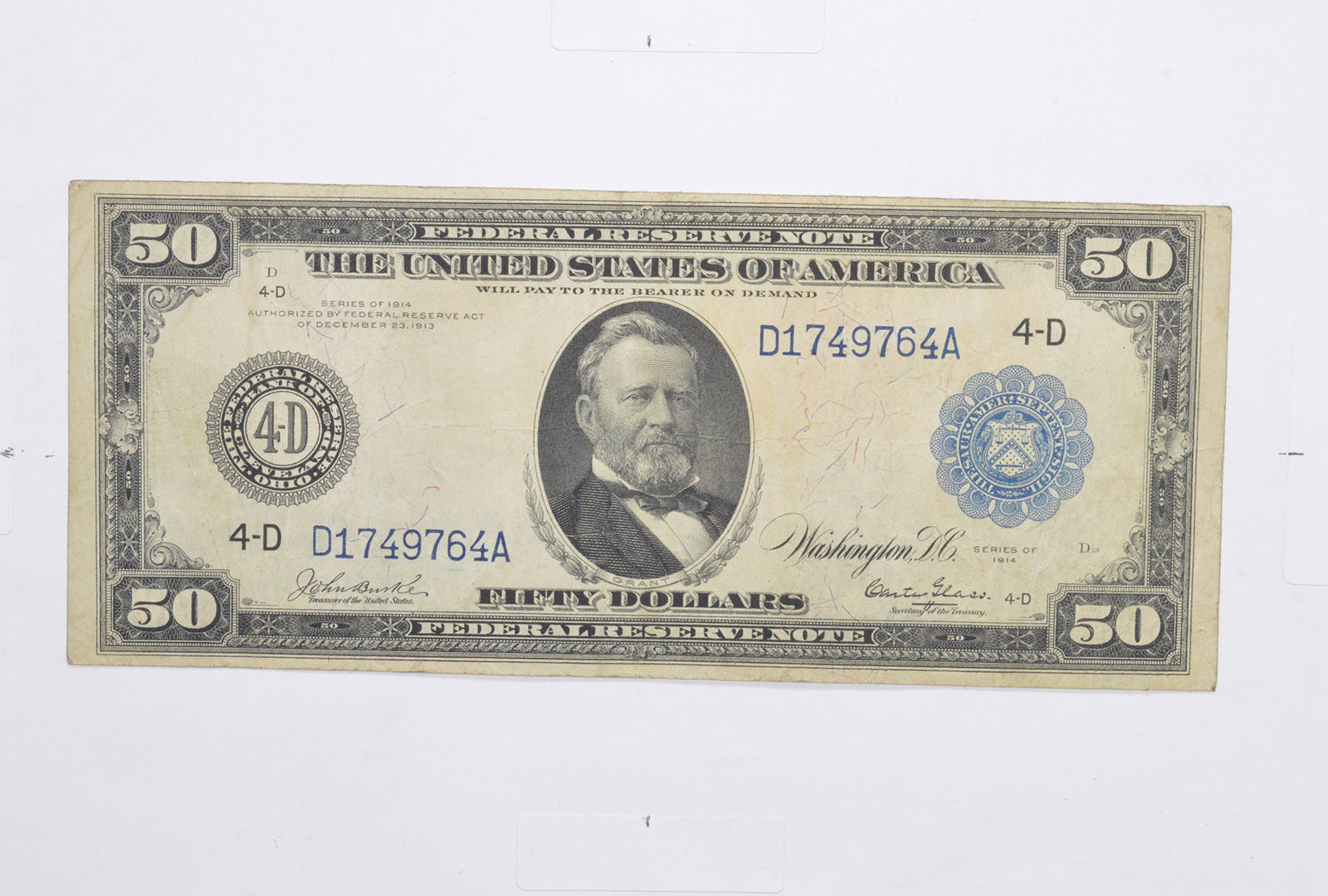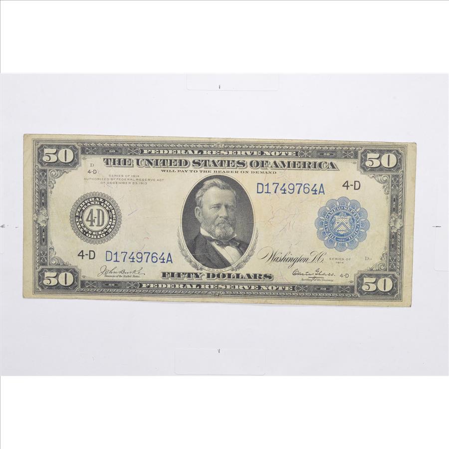 1914 $50 Federal Reserve Note - FR 1037 - Horse Blanket