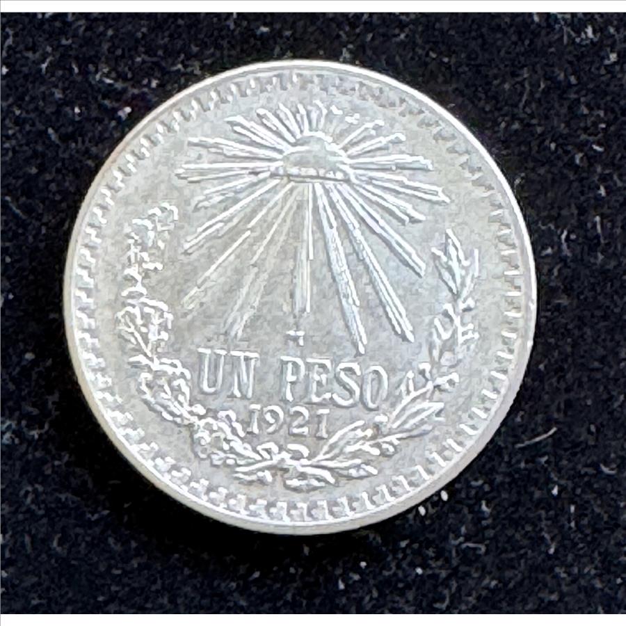 1921 MEXICO SILVER UN PESO, BRIGHT LUSTER DETAILS QUALITY COIN