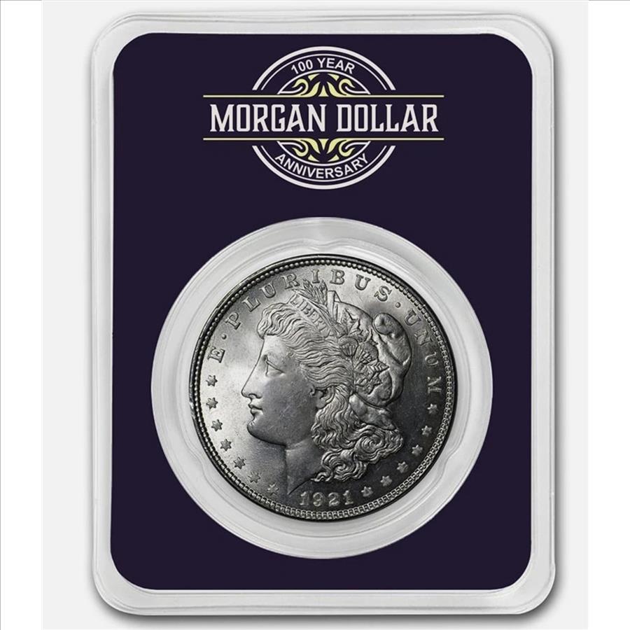 1921 Morgan Silver Dollar BU Coin 100th Anniversary Card - 1921-2021 TEP Holder
