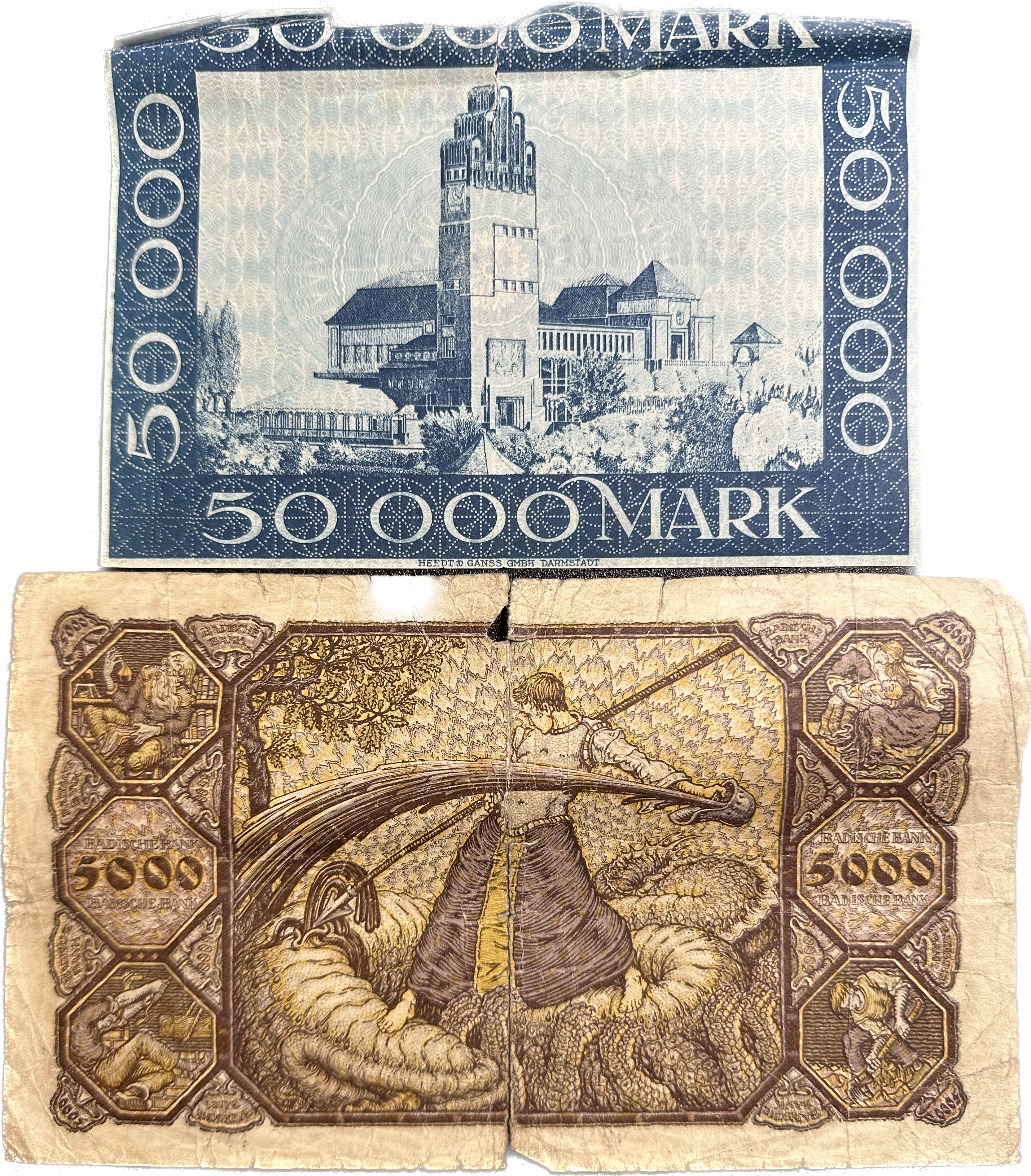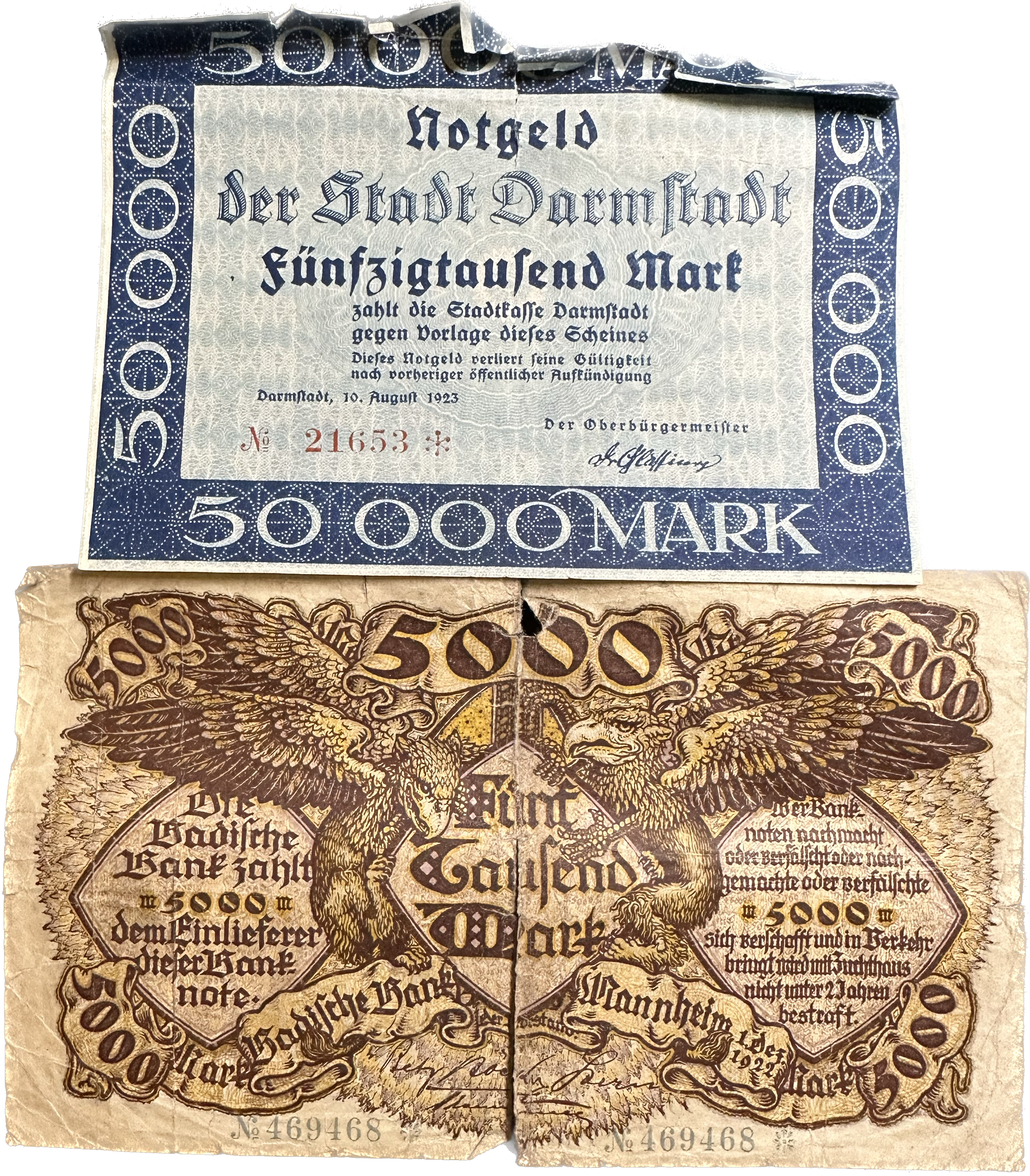 >1922 & 1923 Germany Currency - 5000 and 50000 Mark Banknotes