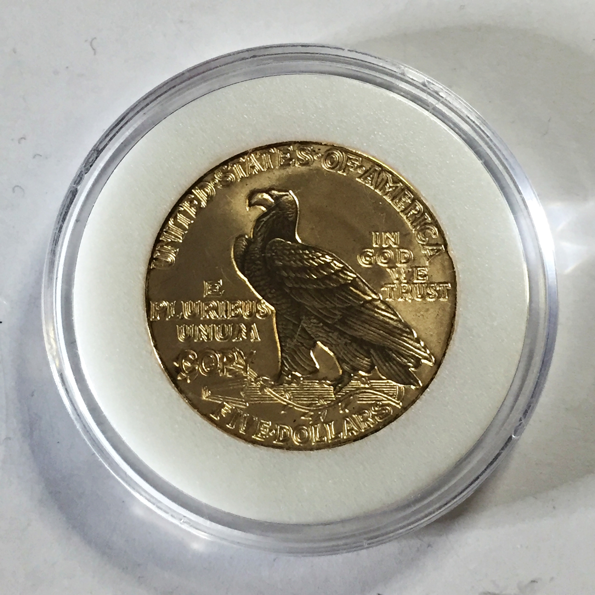 1929 $5 Indian 24K Gold Layered Replica*1" Diameter*Beautiful Reverse Proof*In Protective Capsule