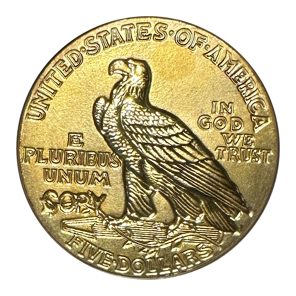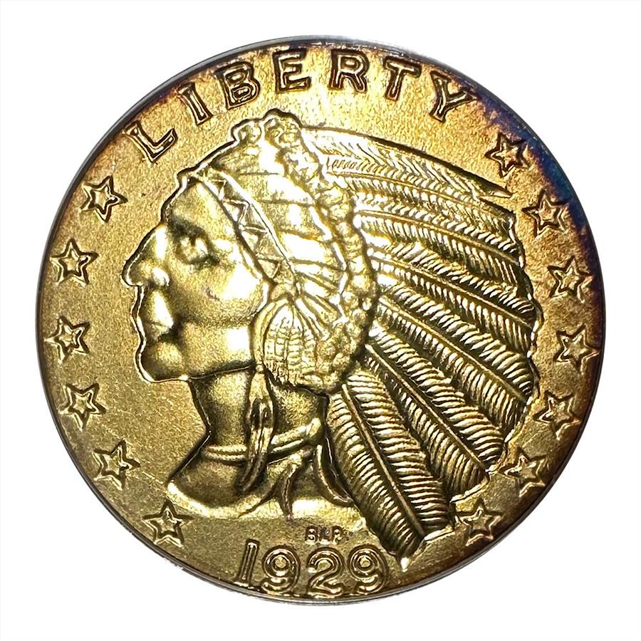 1929 Liberty Indian Eagle Five ($5) Dollars 'Copy' Coin Gold-Toned with Spot of Blue Toning Obverse, Encased