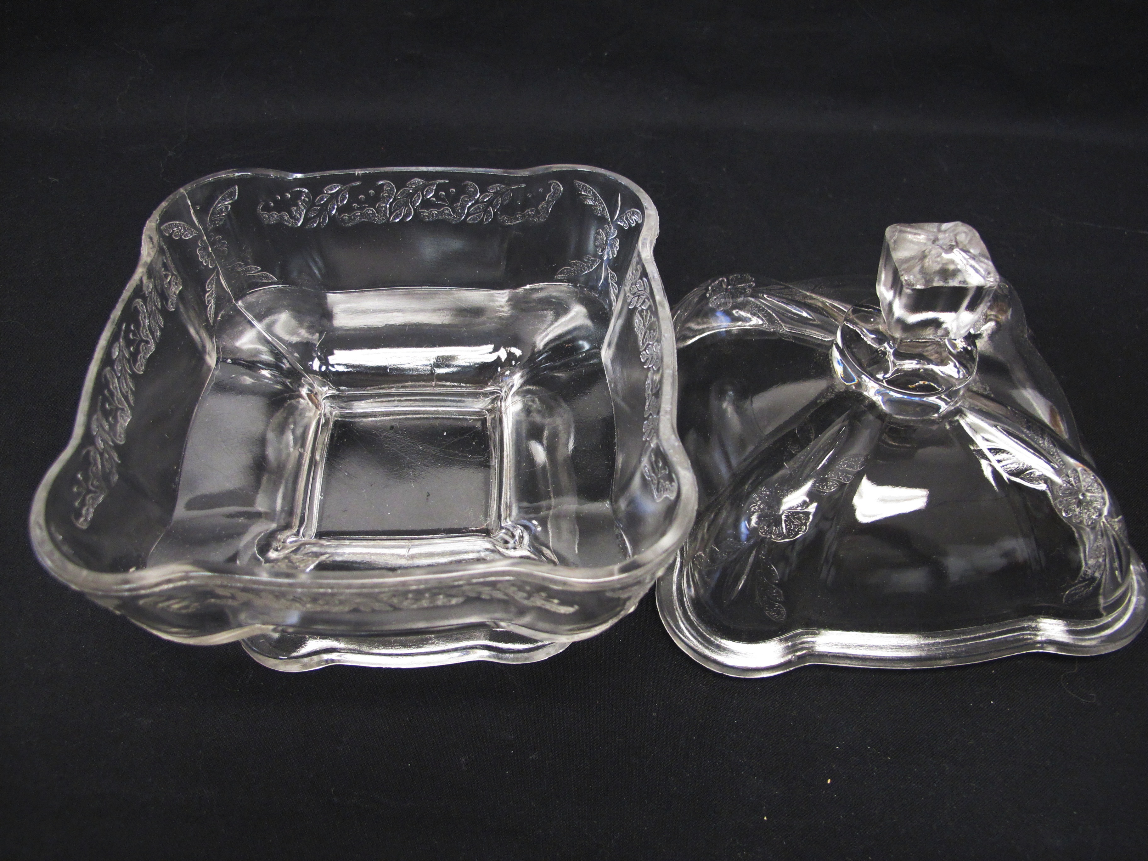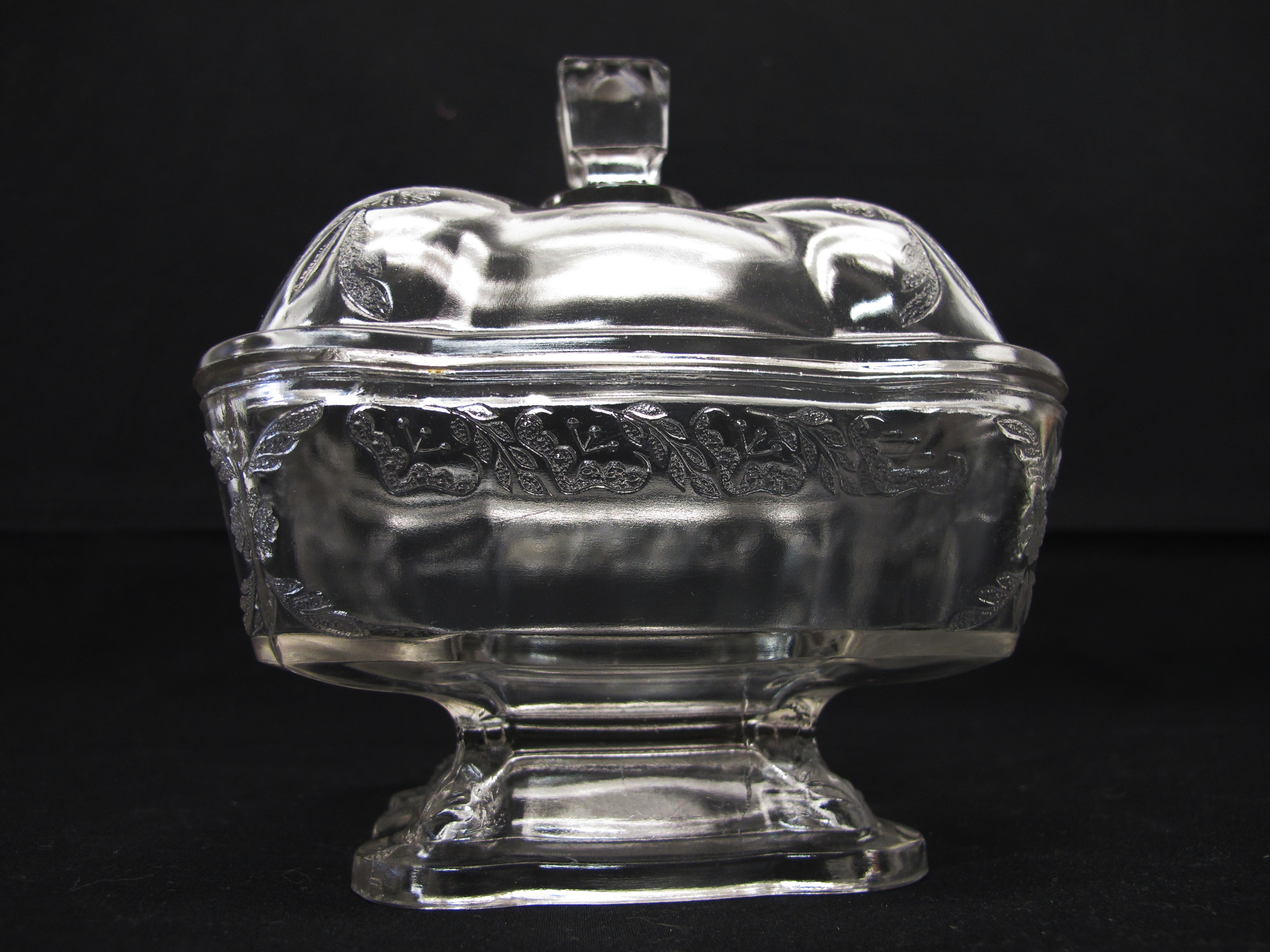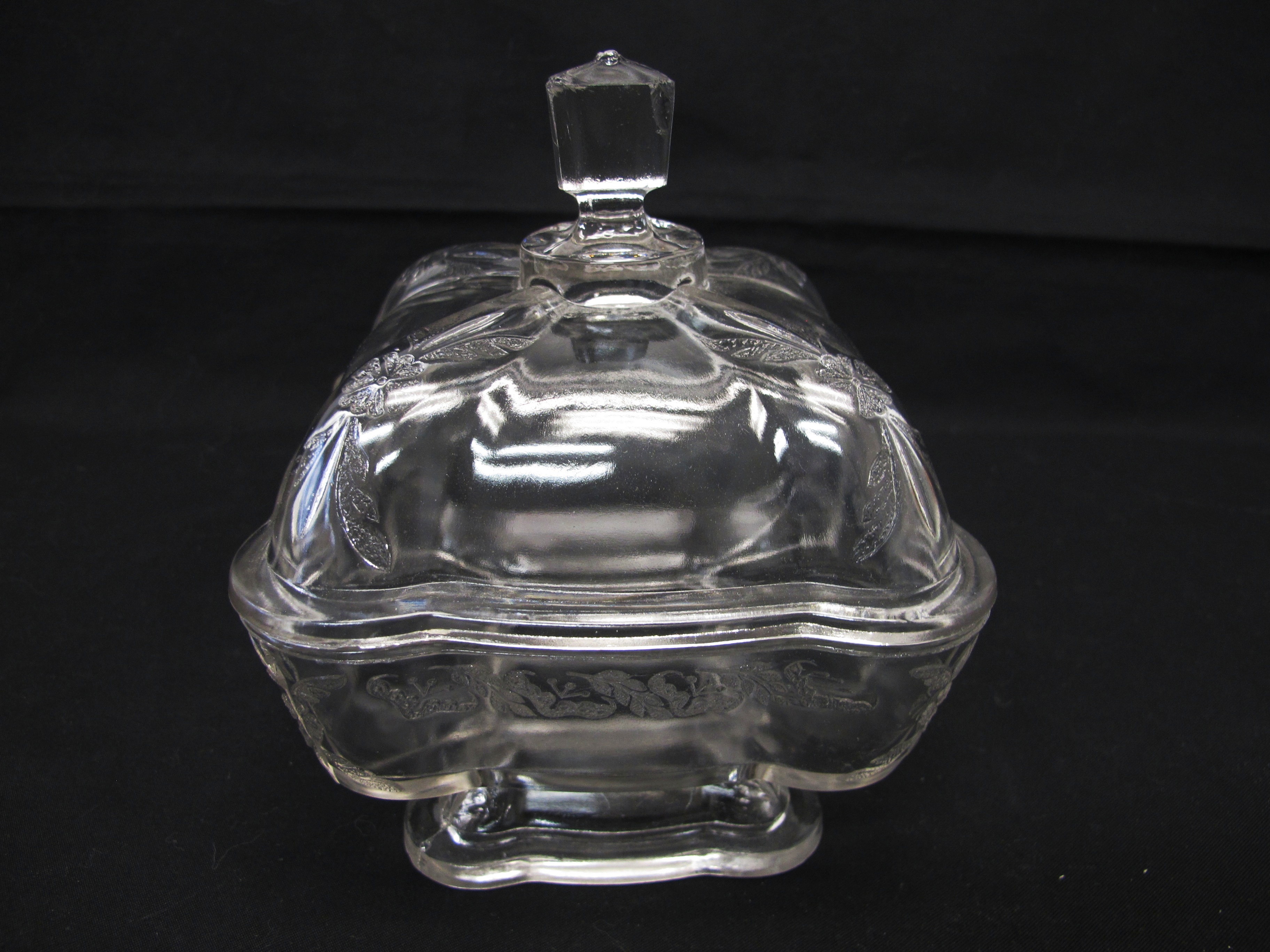 1930s Press Glass Covered Dish