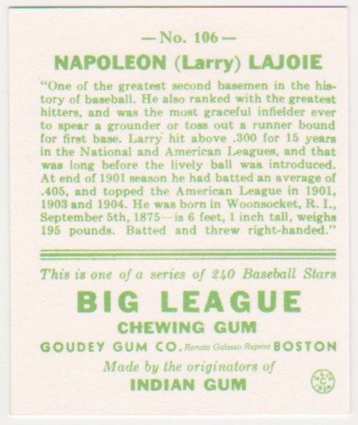 1933 Goudey Napoleon Lajoie #106 Reprint Card