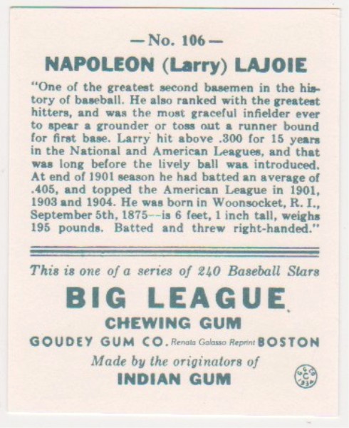 1933 Goudey Napoleon Lajoie #106 Reprint Card
