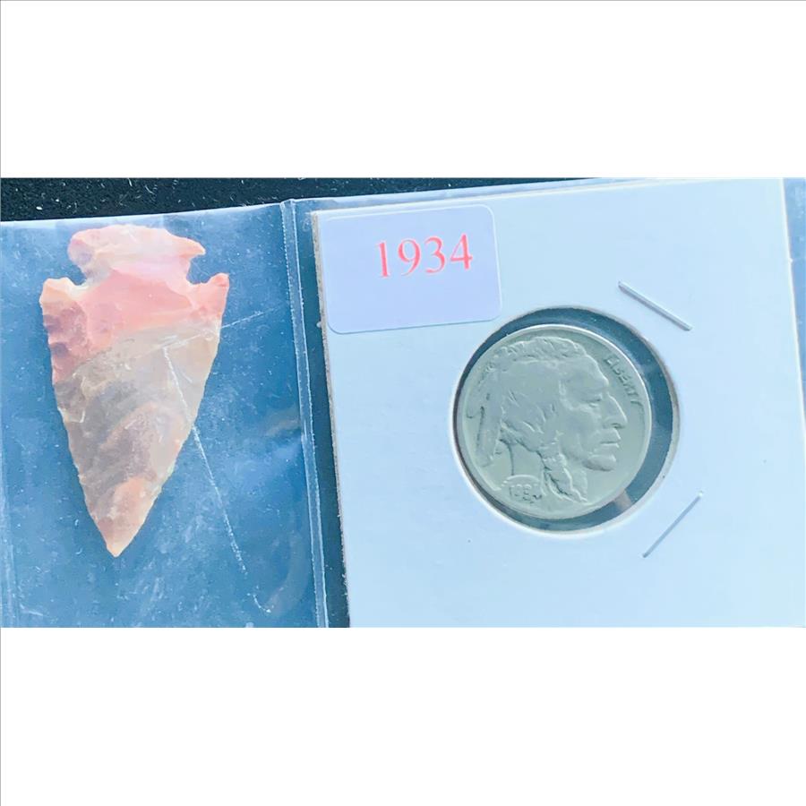 1934 BUFFALO NICKEL COIN WITH AN ARROWHEAD