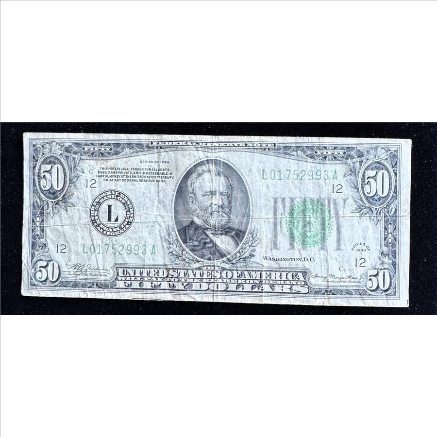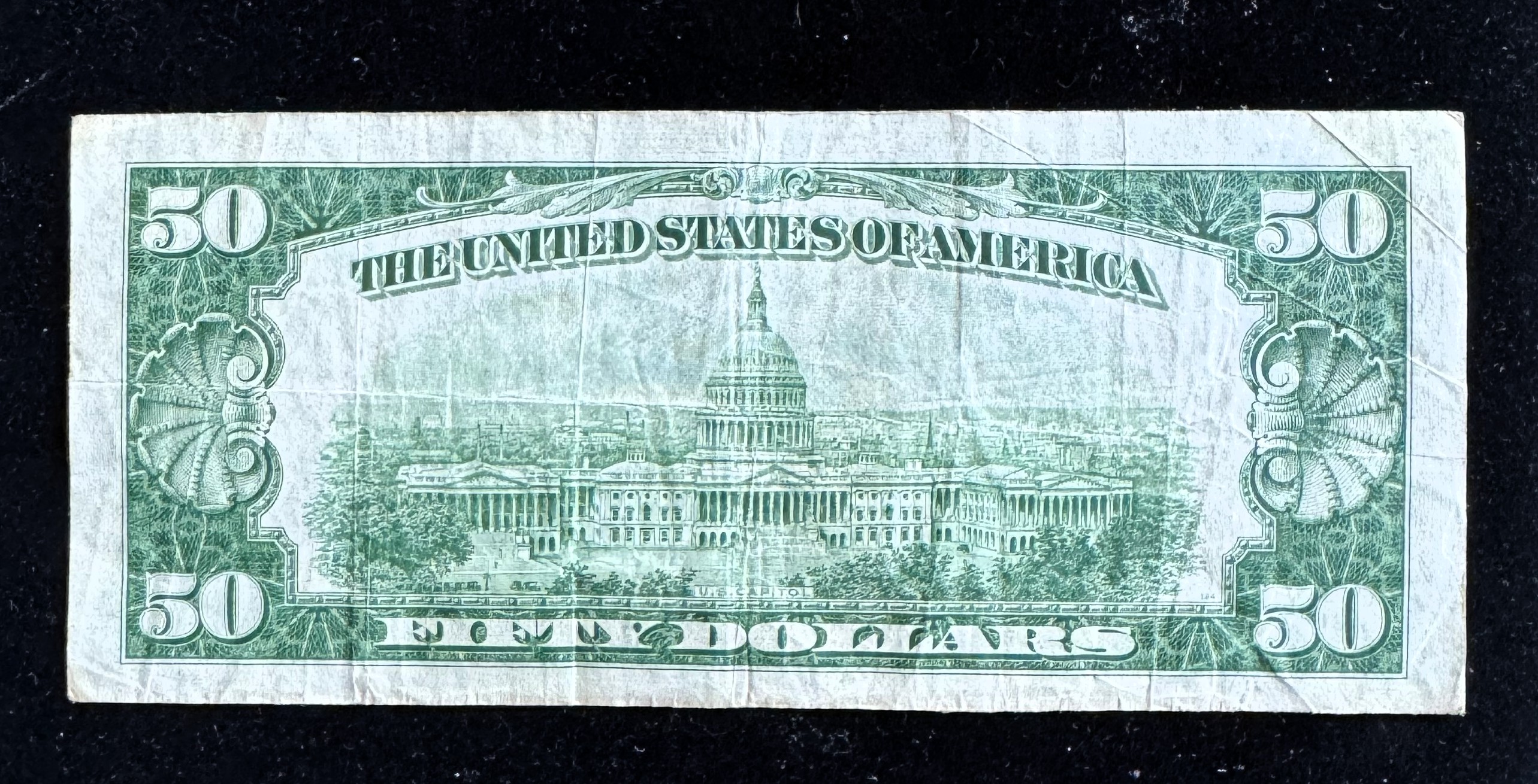 1934 SERIES $50 DOLLAR SAN FRANCISCO FEDERAL RESERVE NOTE, GREEN SEAL IN A SLEVE