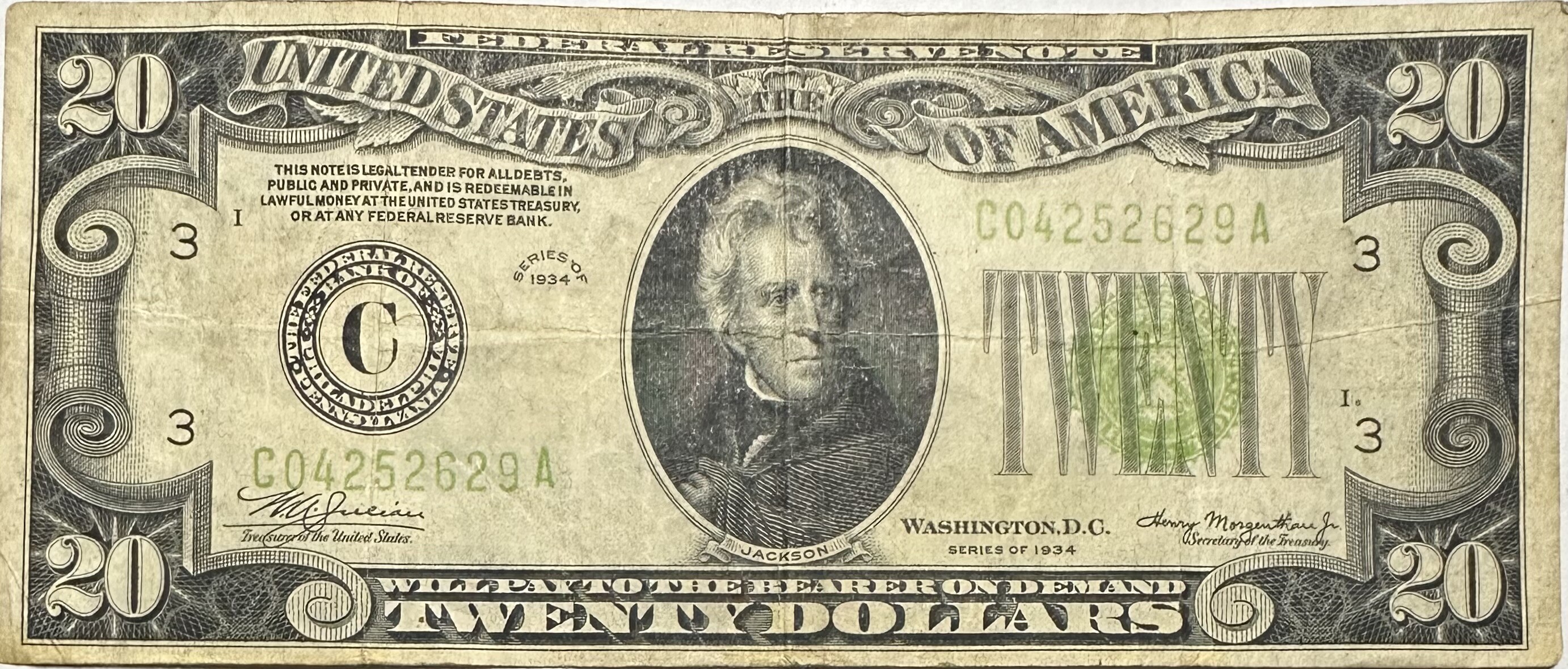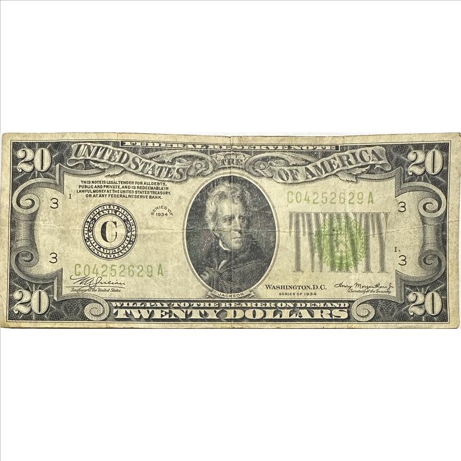>1934 Series U.S. Twenty Dollar ($20) Federal Reserve Note with Light Green Seal