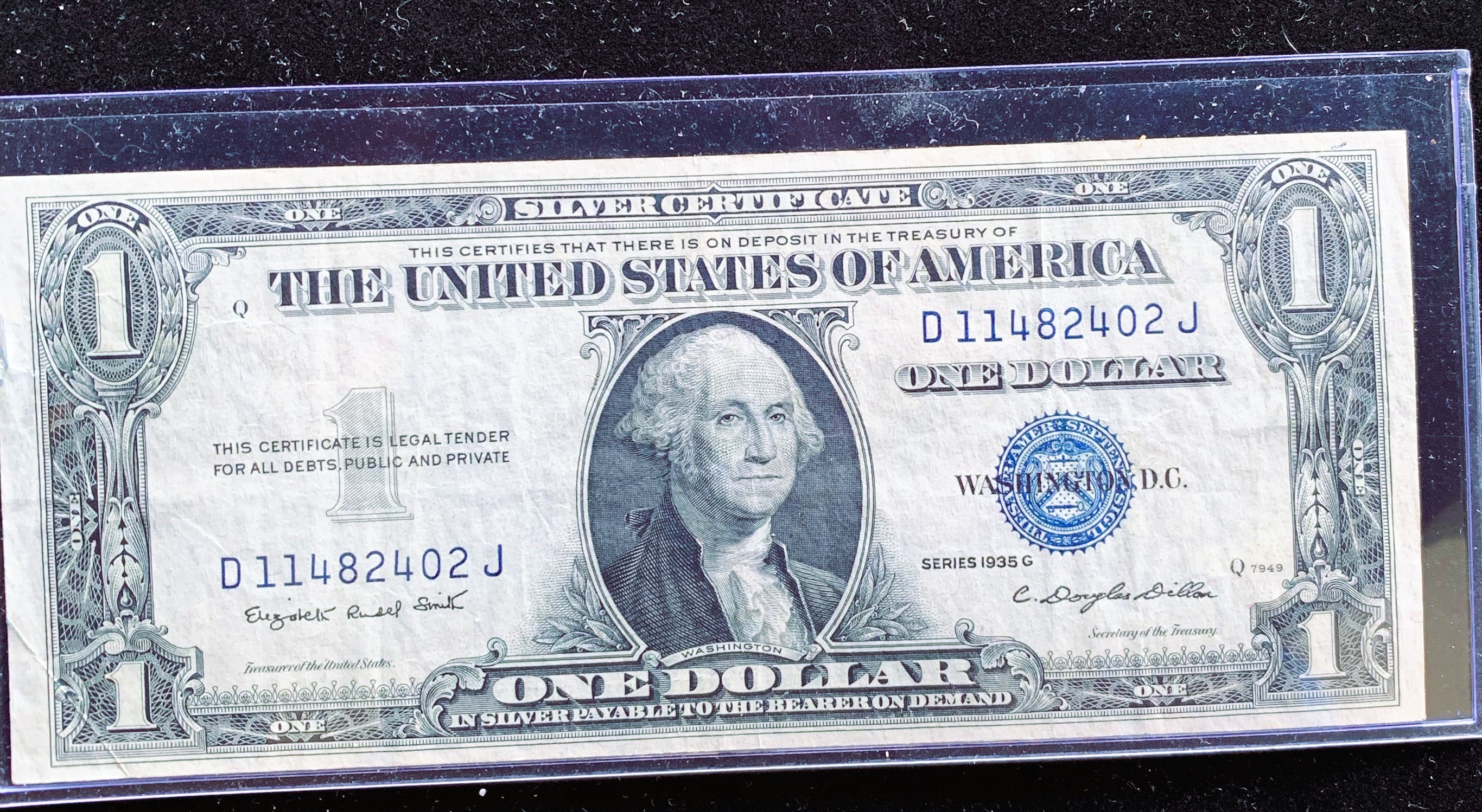 1935 G SERIES $1 DOLLAR SILVER CERTIFICATE BLUE SEAL CRISP IN SLEVE