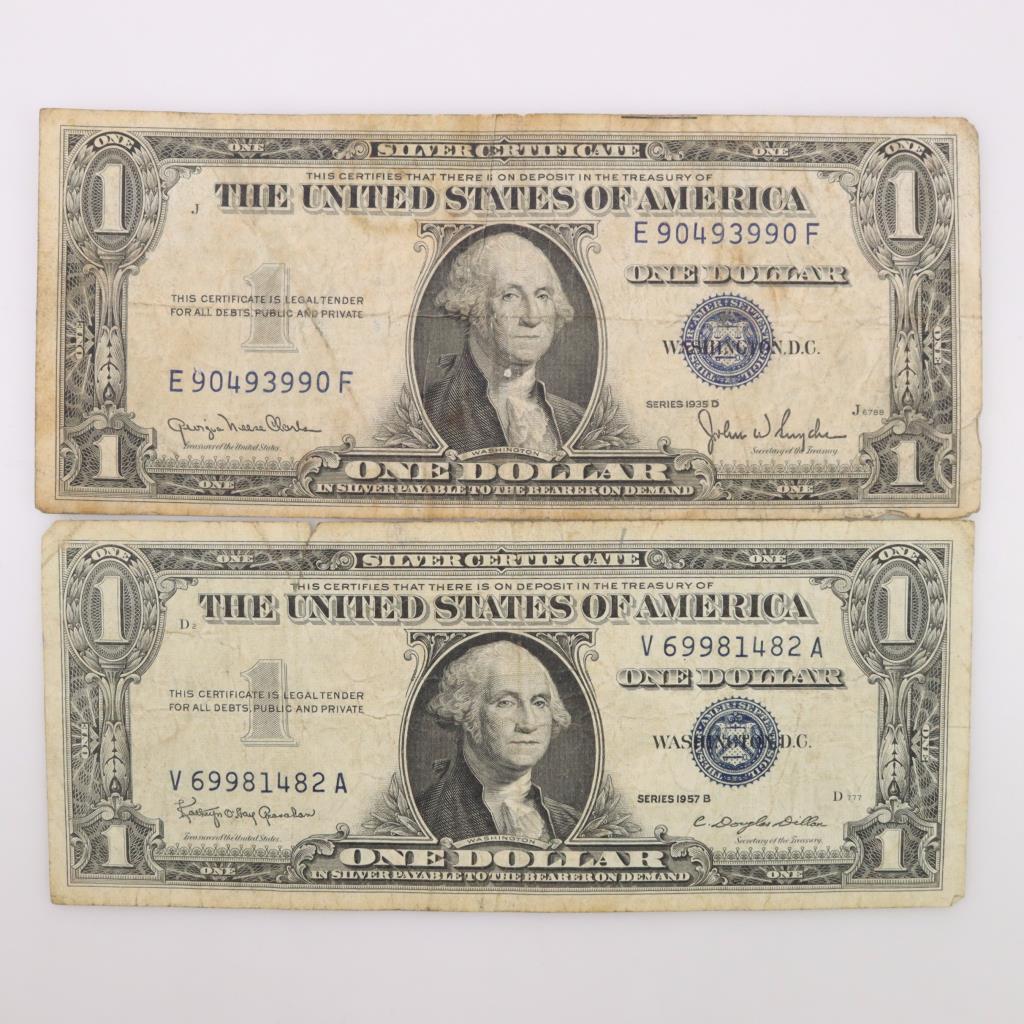 1935-D And 1957-B US Silver Certificate One Dollar, 2 Bills
