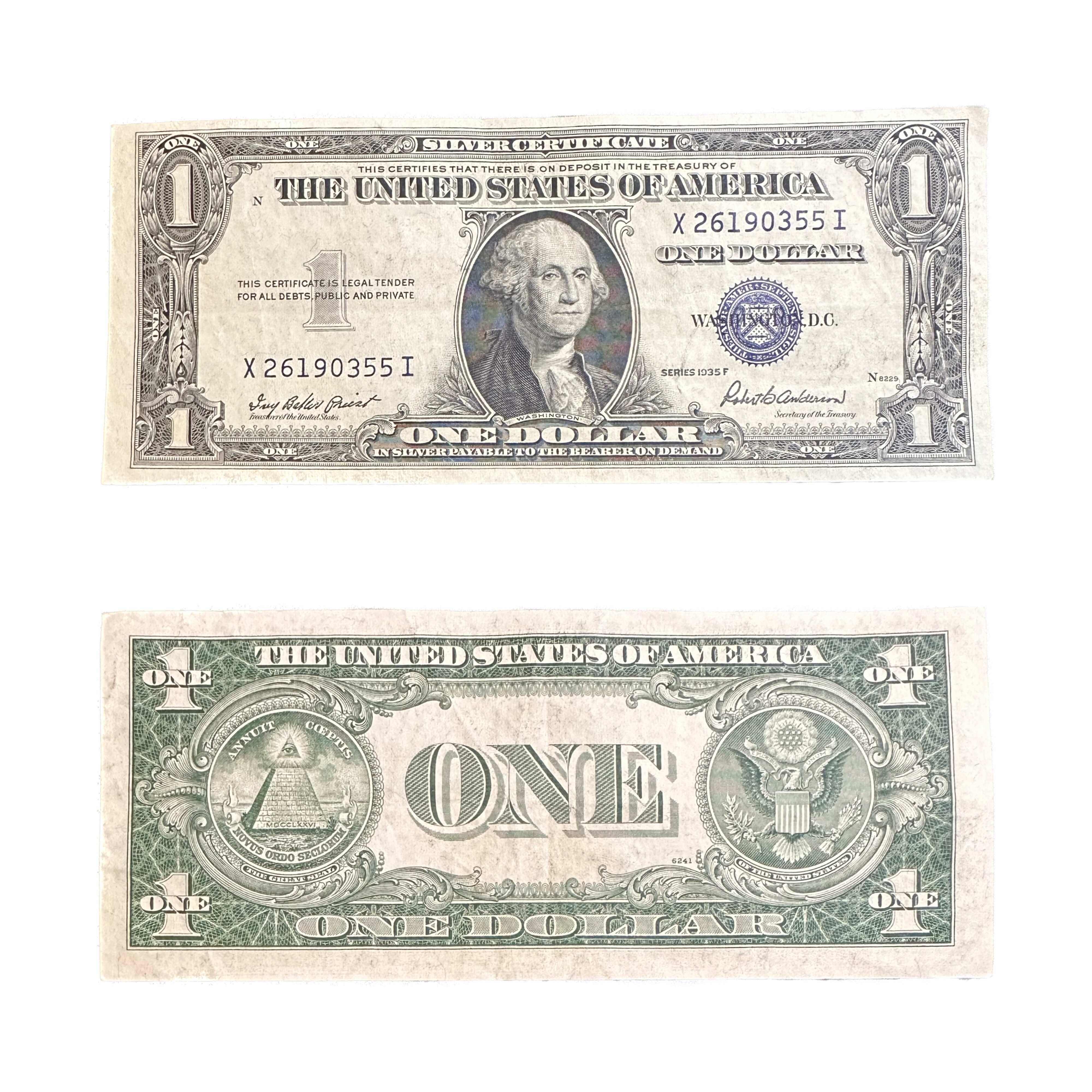 >1935F Series U.S. One Dollar ($1) Crisp Silver Certificate Note - Blue Seal!