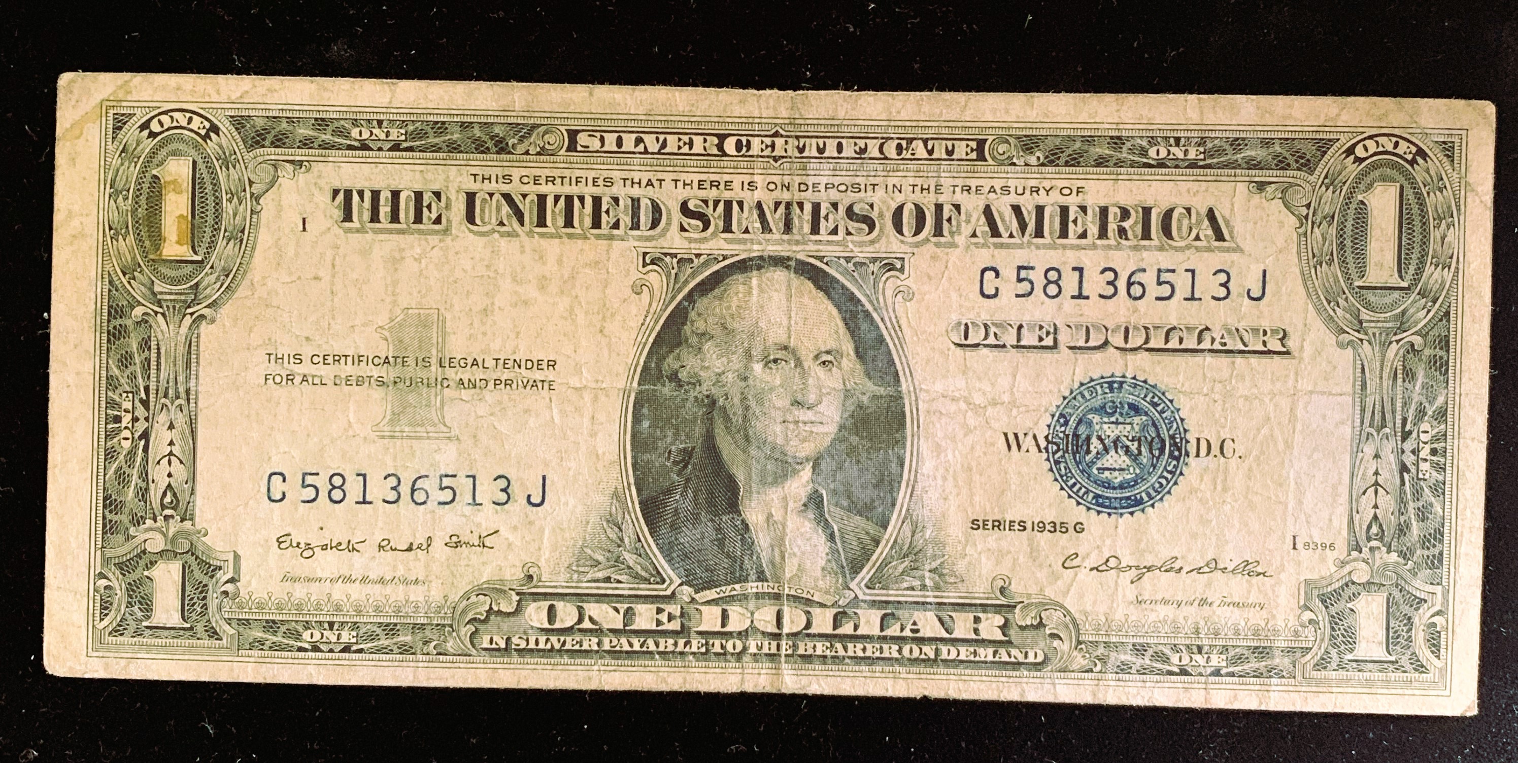 1935-G SERIES $1 SILVER CERTIFICATE NOTE IN THE SLEVE