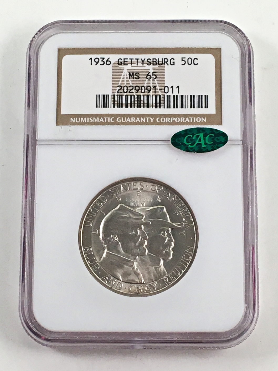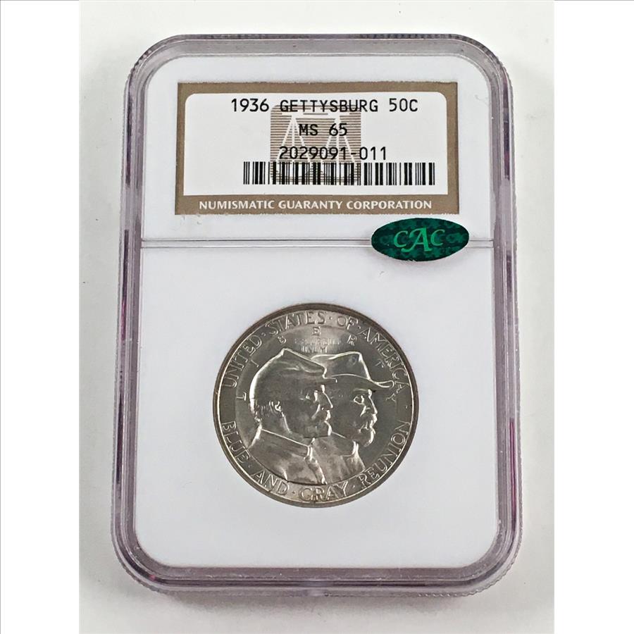 1936 Battle of Gettysburg Anniversary Silver Half Dollar Commemorative*Graded MS65 by NGC*Green CAC Sticker
